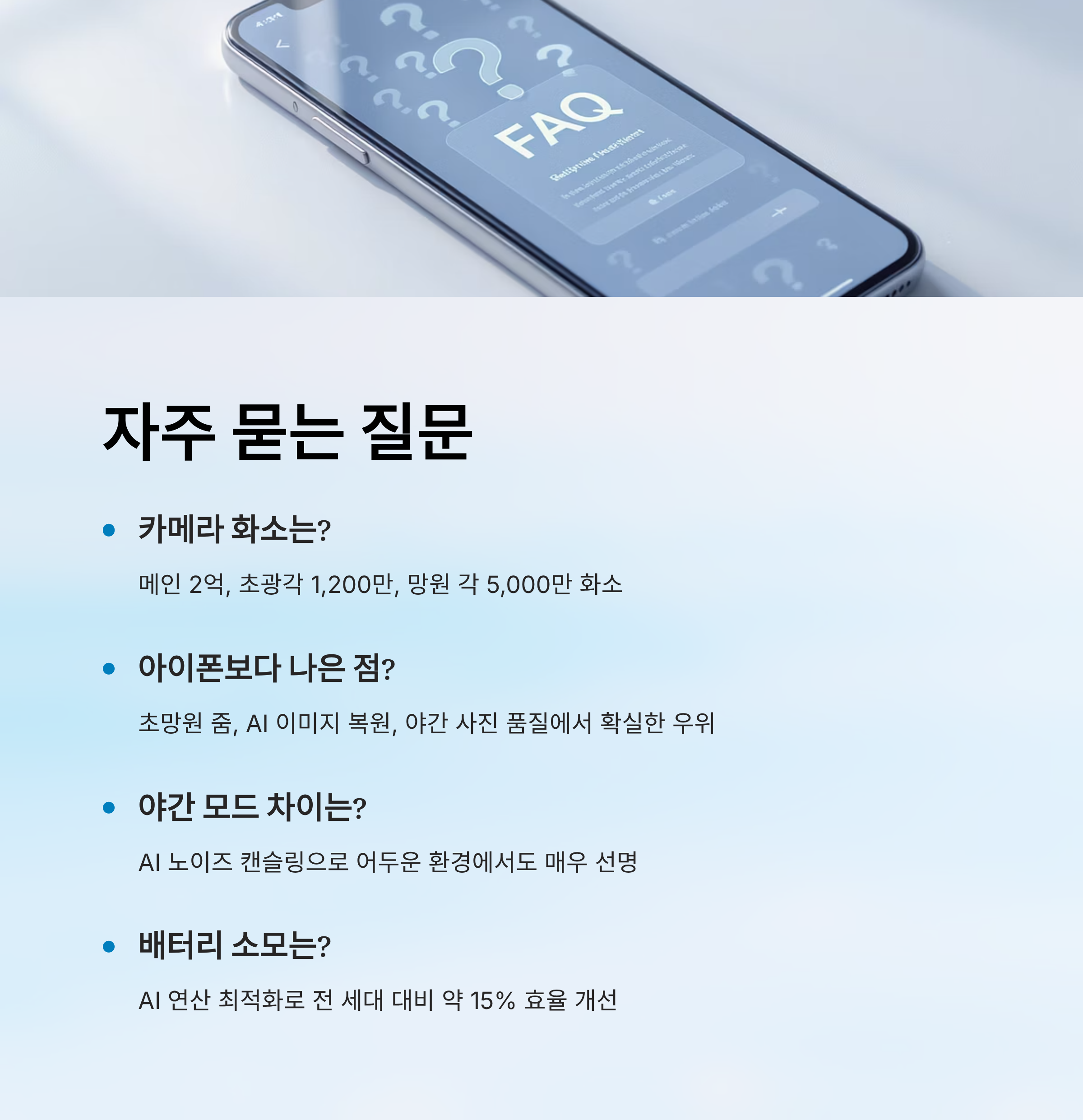 게다가 이번 줌 렌즈는 ‘하이브리드 광학’을 지원해요. 디지털 보정 없이 광학 성능으로 최대 15배까지 선명도를 유지할 수 있고, 이후 100배 디지털 줌 구간에서도 AI가 디테일을 보강해줍니다. 이건 아이폰 프로맥스가 따라가기 어려운 부분이에요. 아이폰은 여전히 5배 광학줌에 머무르고 있거든요. 삼성은 “이제 망원 사진은 갤럭시의 영역”이라고 자신 있게 선언했답니다.