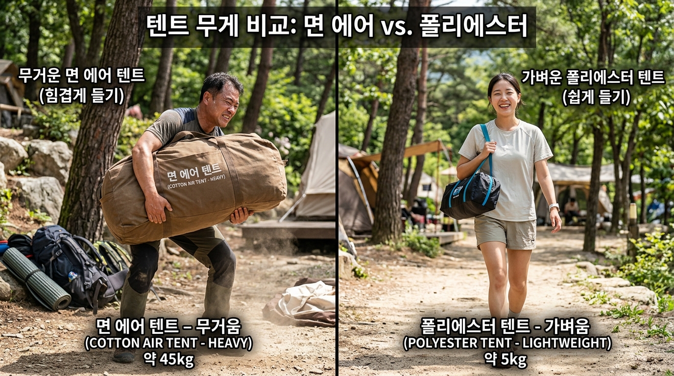 1. 면 혼방 에어텐트: 쾌적함의 끝판왕 vs 무게의 압박 ☁️