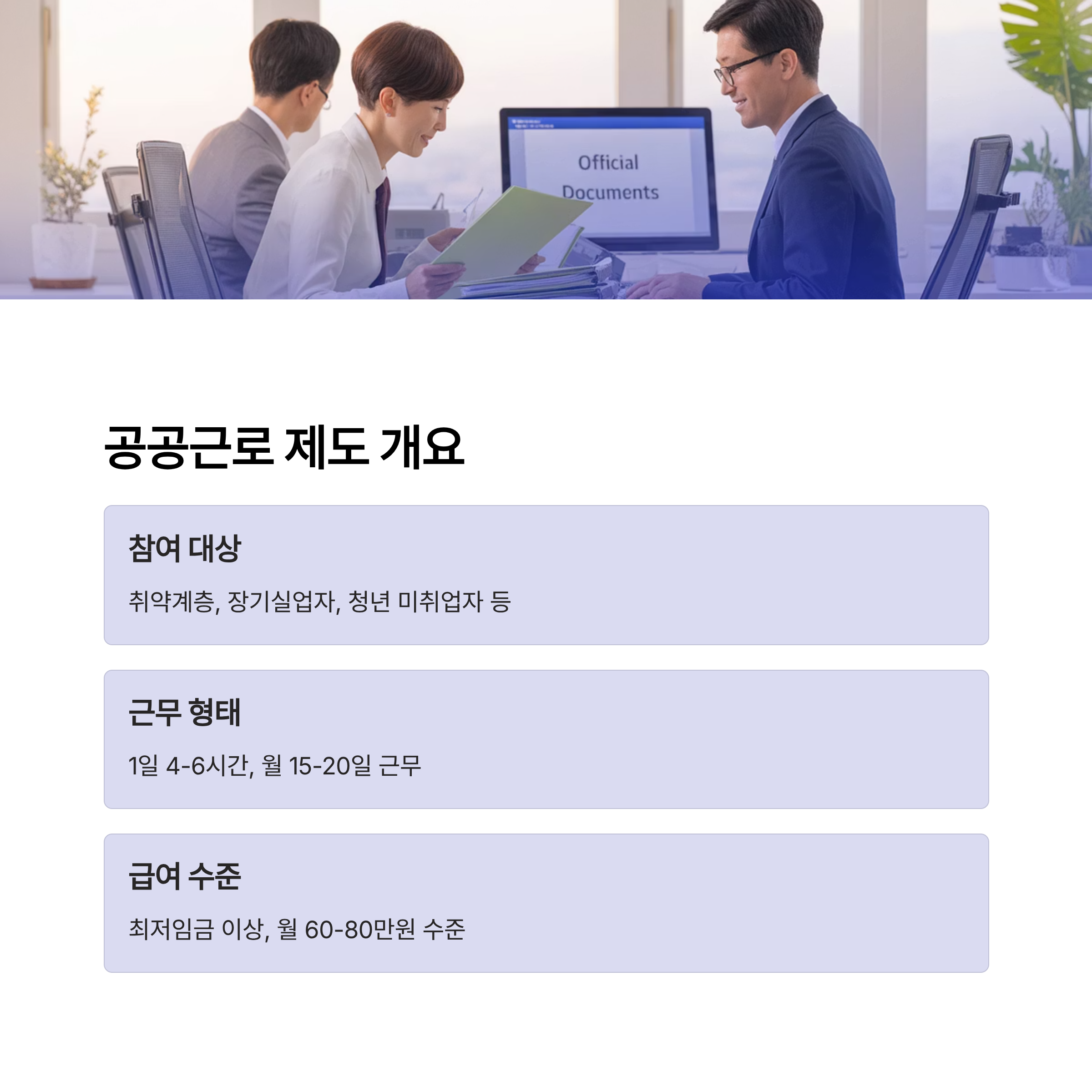 공공근로 사업은 정부 또는 지자체가 단기적으로 일자리를 제공하는 정책이에요. 주로 취약계층, 장기실업자, 청년 미취업자 등이 주요 대상이죠. 보통은 행정 사무보조, 환경미화, 지역사회 공공사업 등의 형태로 참여하게 돼요.