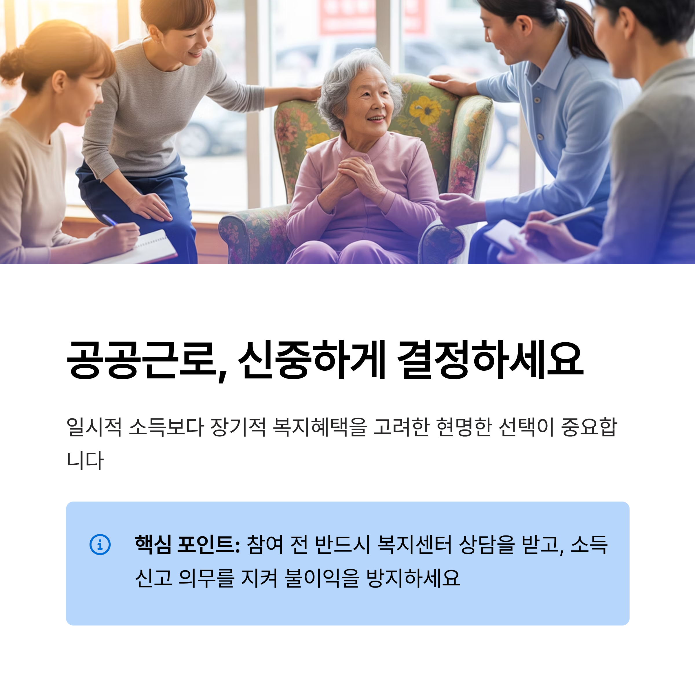 정리하자면, 공공근로는 임시 소득을 제공하는 긍정적인 제도지만, 참여 이전에 반드시 복지와의 연계를 고려한 판단이 필요하다는 점이에요. 소득신고 누락 시 불이익도 발생할 수 있어요.