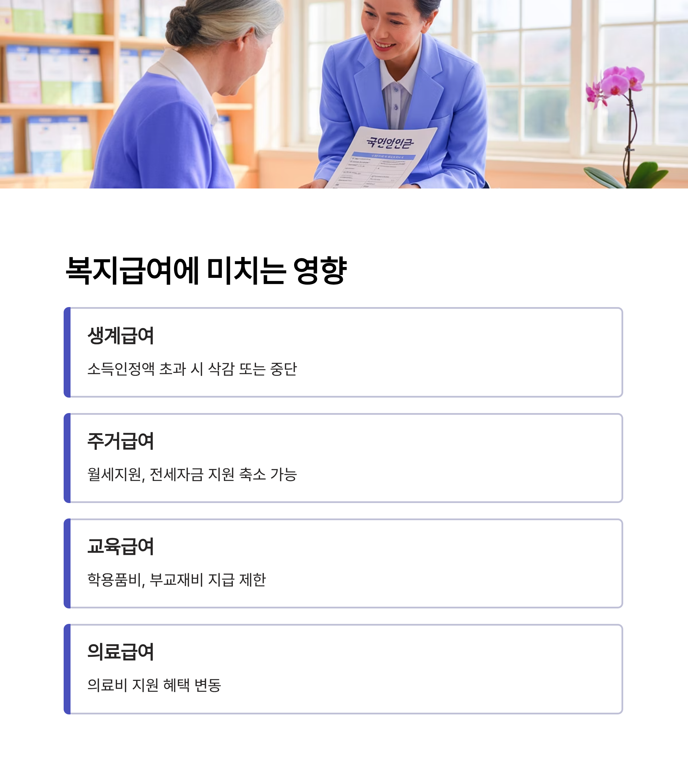 공공근로를 통해 얻는 소득은 복지급여 산정에 직접적인 영향을 줘요. 예를 들어 생계급여는 가구의 소득인정액이 기준 중위소득의 일정 비율을 넘을 경우 삭감되거나 중단될 수 있어요. 이는 의료급여, 주거급여, 교육급여 모두 해당돼요.
