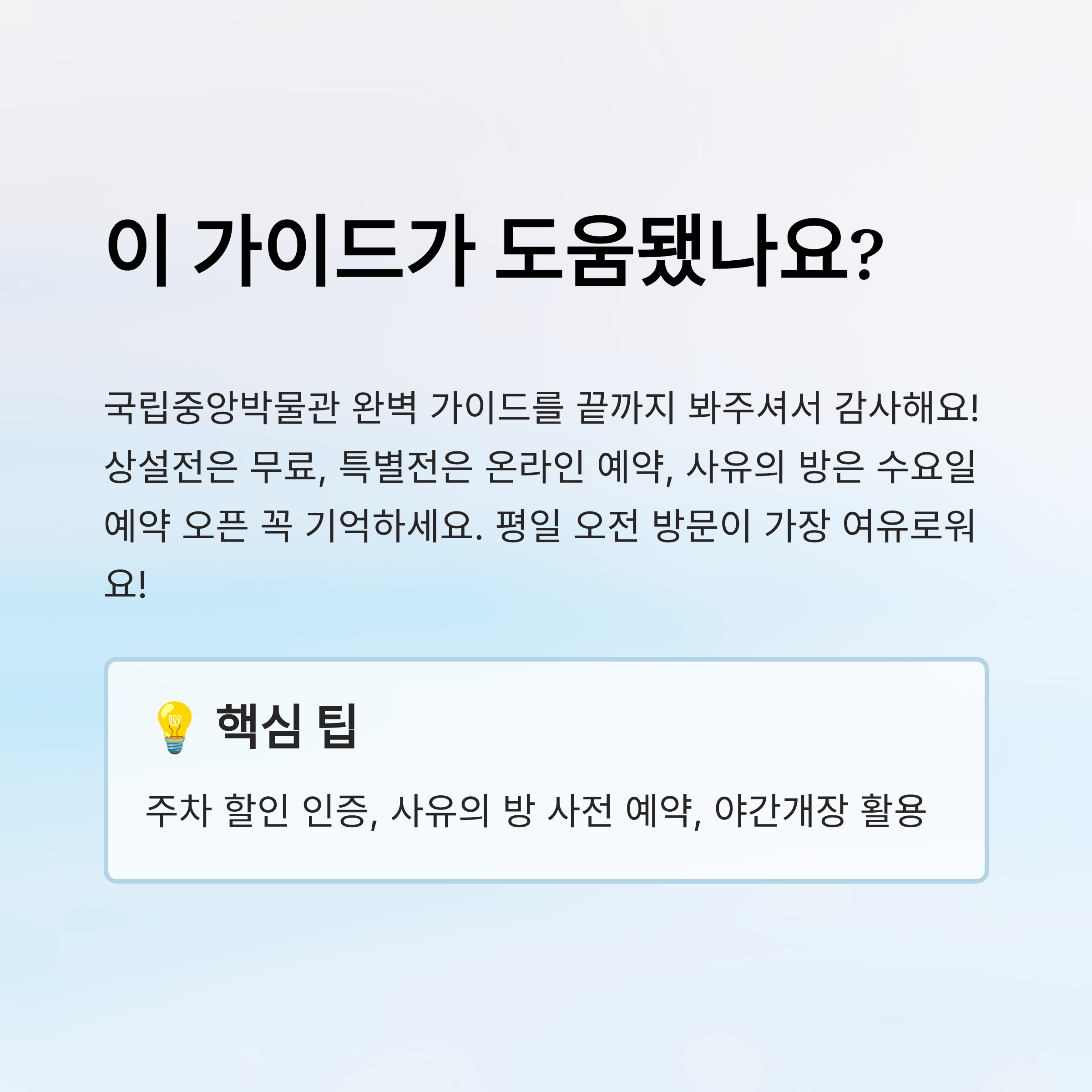 그래서 오늘은 2025년 기준 최신 정보로 준비한 ‘국립중앙박물관 완벽 가이드’를 소개할게요! 처음 가는 분들도, 여러 번 가봤지만 놓친 부분이 있는 분들도 이 글 하나면 전부 해결돼요. 정말 말 그대로 ‘이거 하나면 끝!’입니다. 😎
