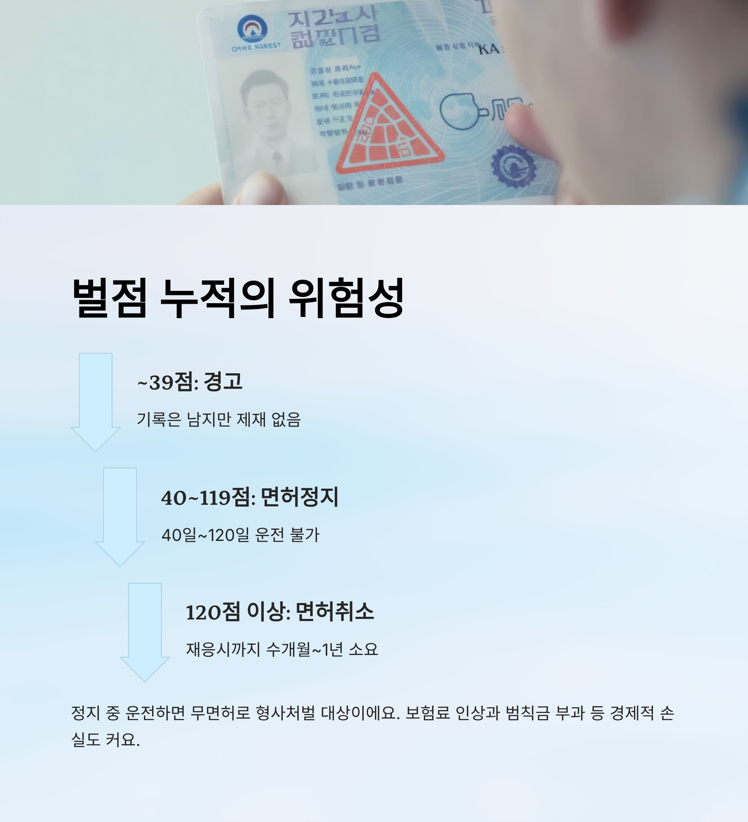 | 40~119점 | 면허정지 | 40일~120일 |