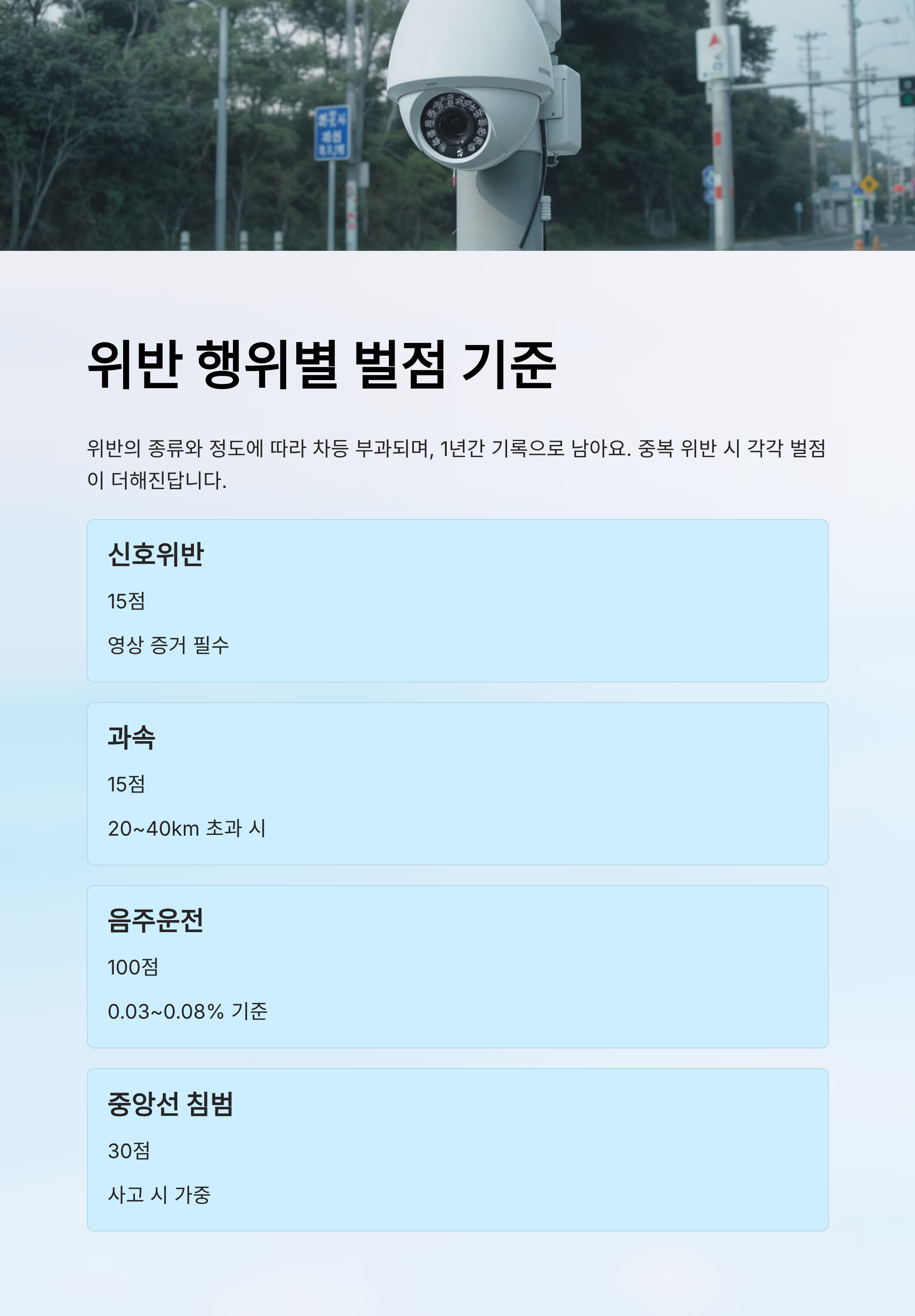 | 신호위반 | 15점 | 적발 시 영상 증거 필수 |