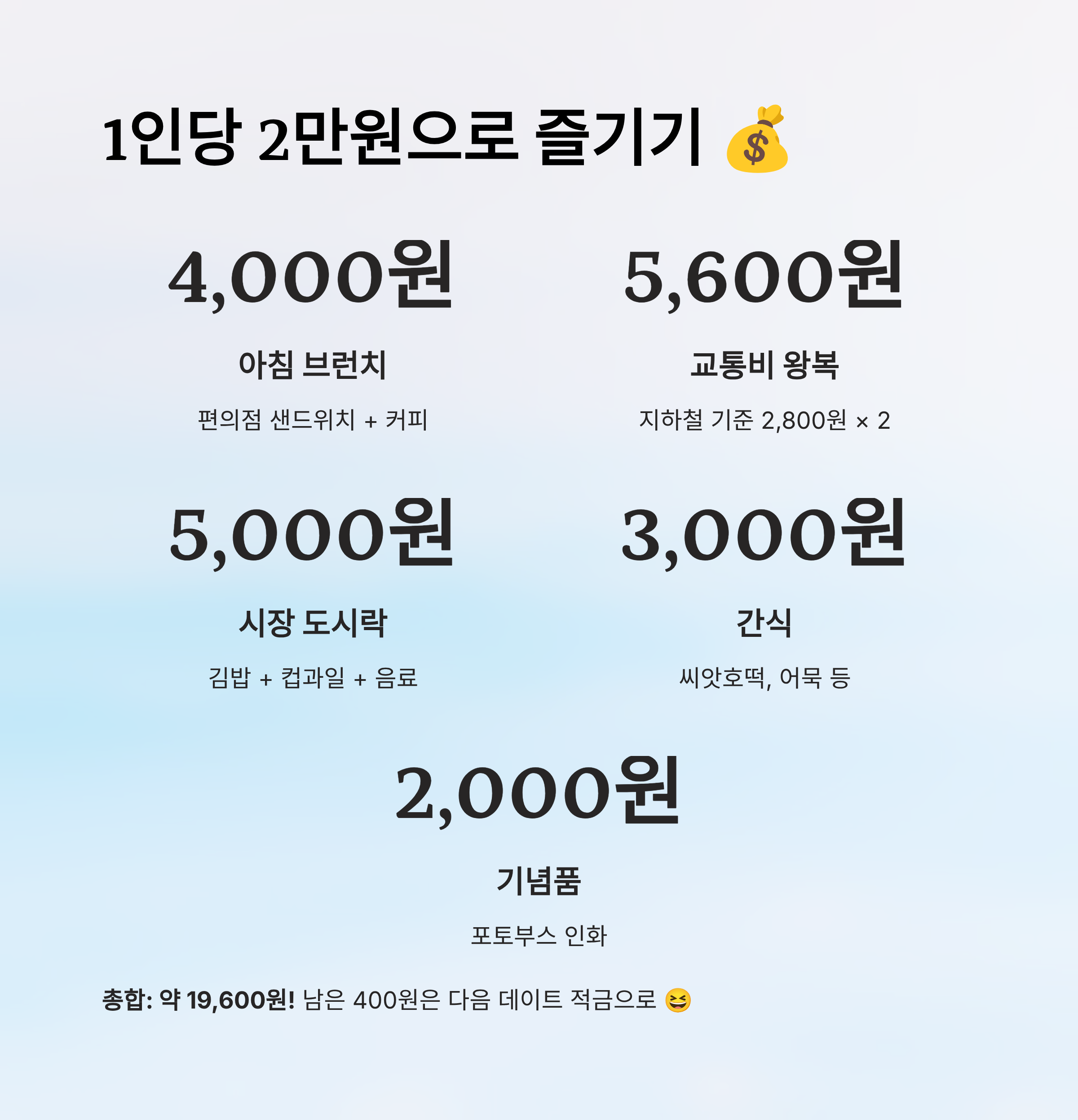 💰 알뜰하게 1인당 2만원으로 즐기기