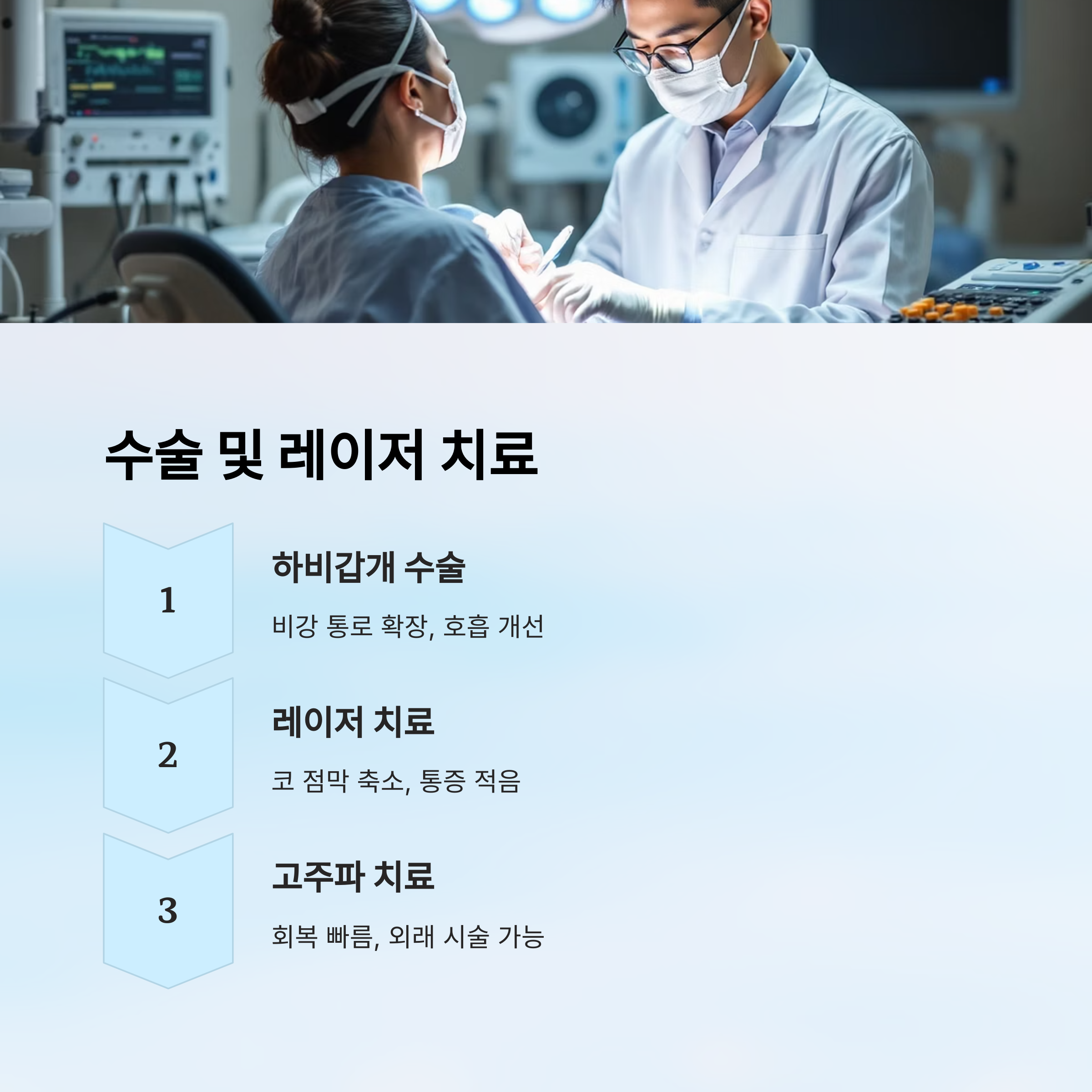 약물과 자연요법으로도 해결되지 않는 비염은 수술이 필요한 경우도 있어요. 특히 구조적 문제나 만성 비후성 비염이라면 고려해볼 수 있어요.