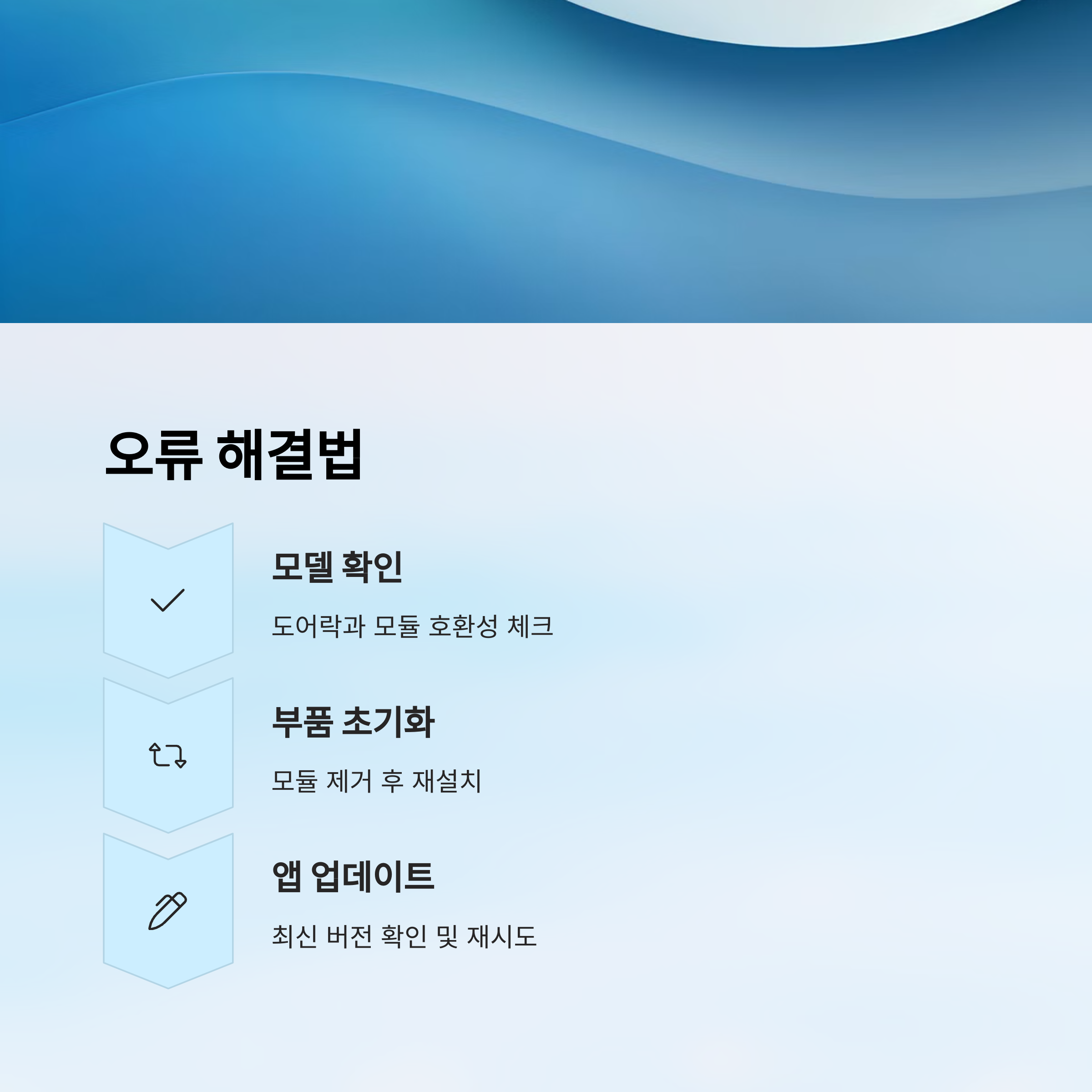 🔧 1. 디바이스 검색이 안 될 때 - 블루투스, 위치 권한이 꺼져 있을 수 있어요 - 도어락과 너무 멀리 떨어져 있으면 신호가 약해요 - 앱을 완전히 종료 후 재실행해보세요