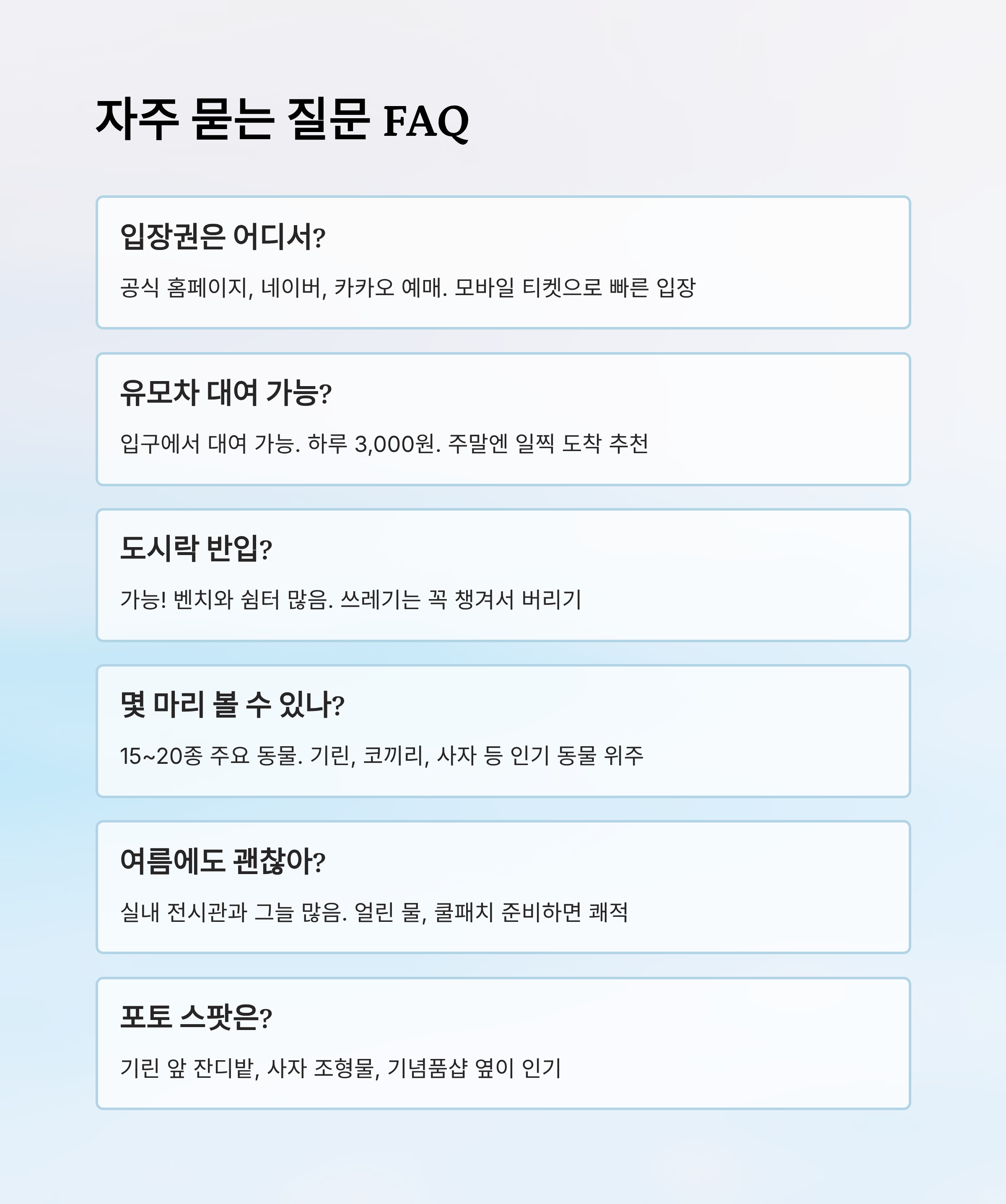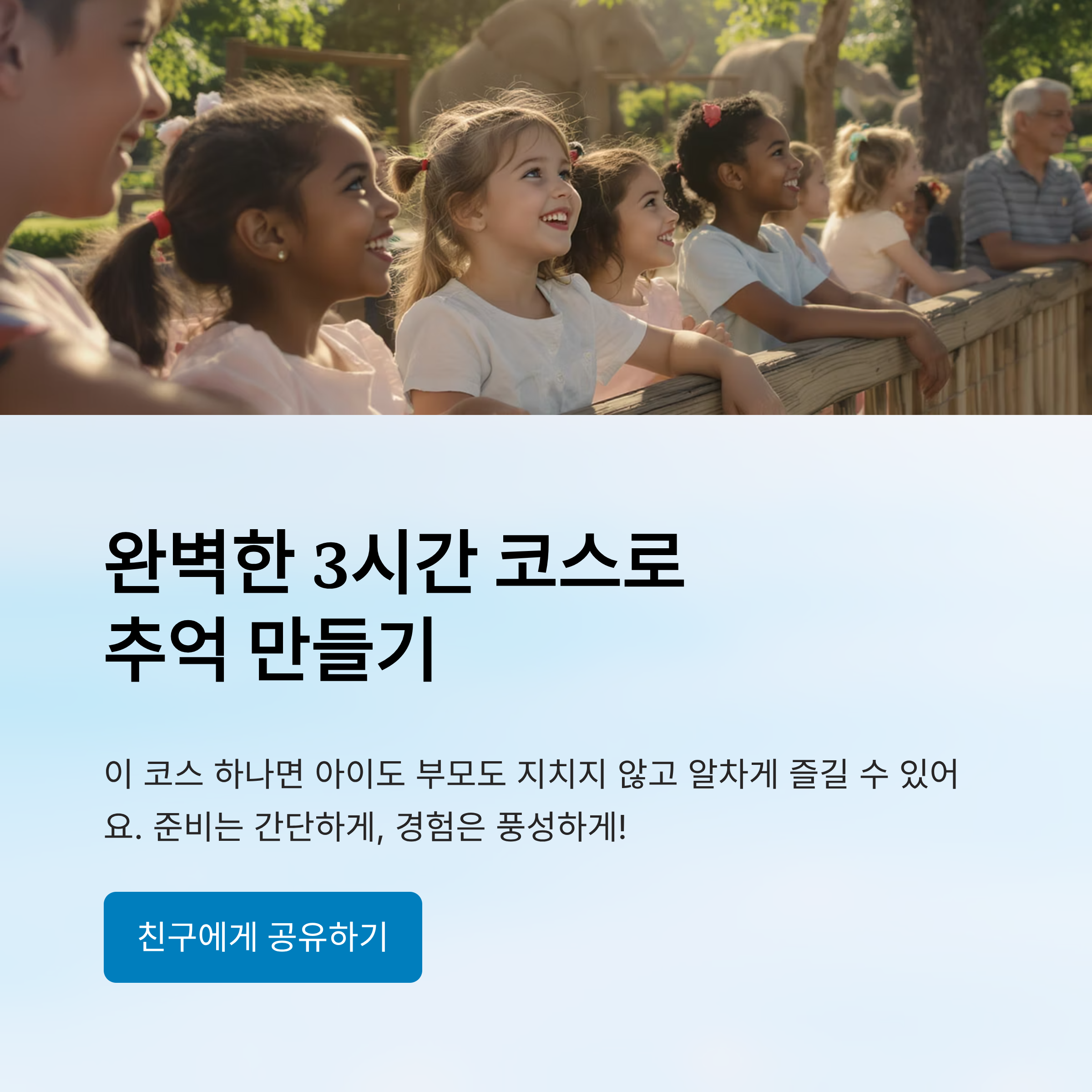 이렇게 진짜 맘들이 직접 다녀와서 남긴 후기들을 보면, “이 코스 하나만 믿고 따라가도 된다”는 자신감이 생겨요. 동물원은 단순히 보는 장소가 아니라, 가족 간의 기억을 쌓는 공간이니까요 🐾