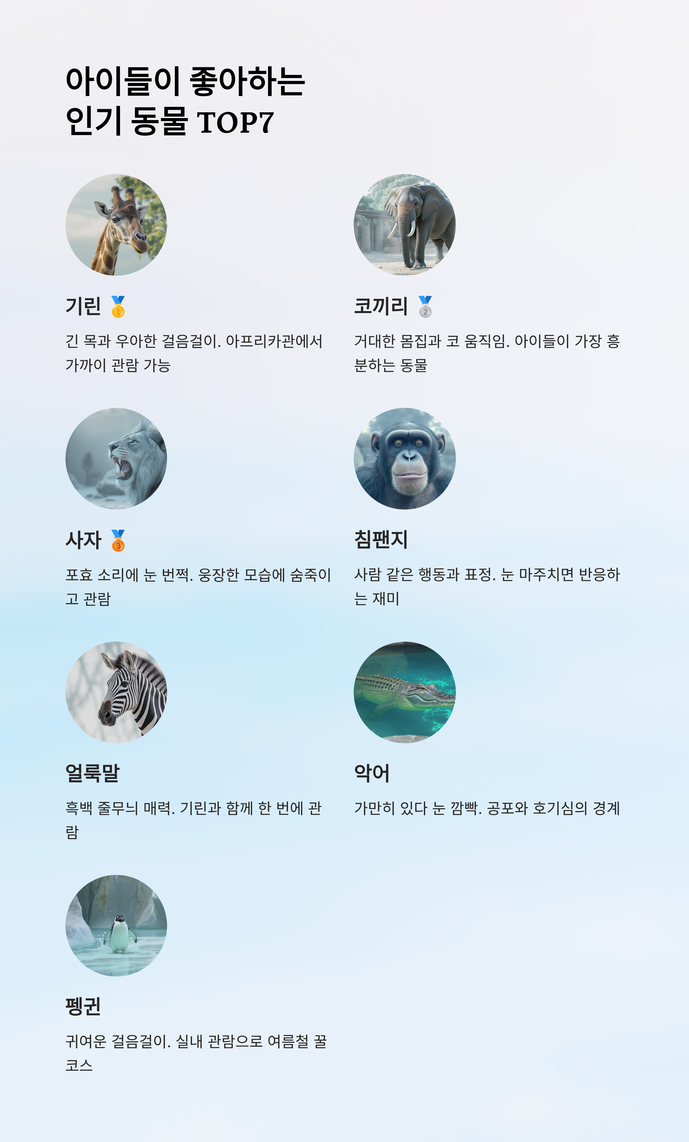 🎯 아이들이 좋아하는 인기 동물 TOP7