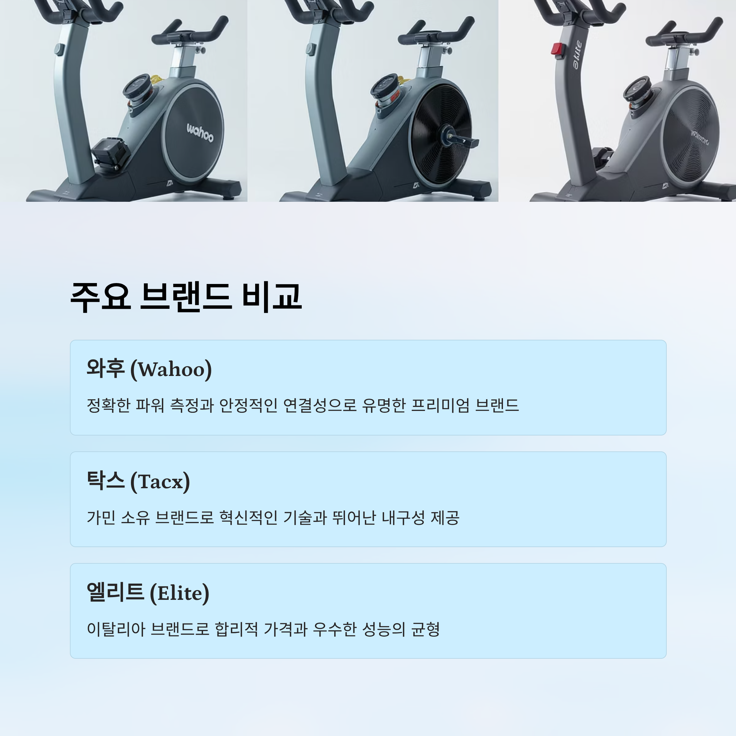 | 와후 키커 코어 | 자동 저항, 파워 측정(정확도 ±2%), 즈위프트 연동 | 110~130만원대 |