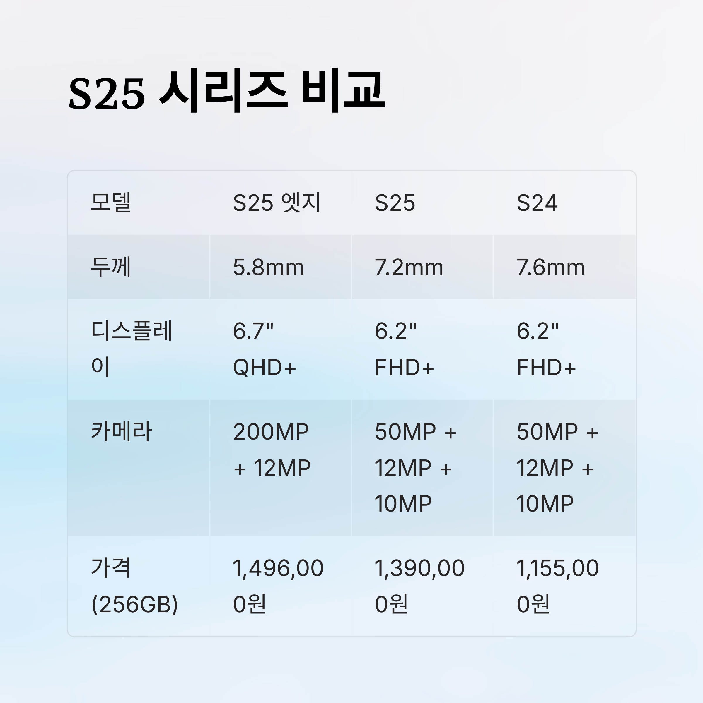 📱 갤럭시 S25 시리즈 비교표