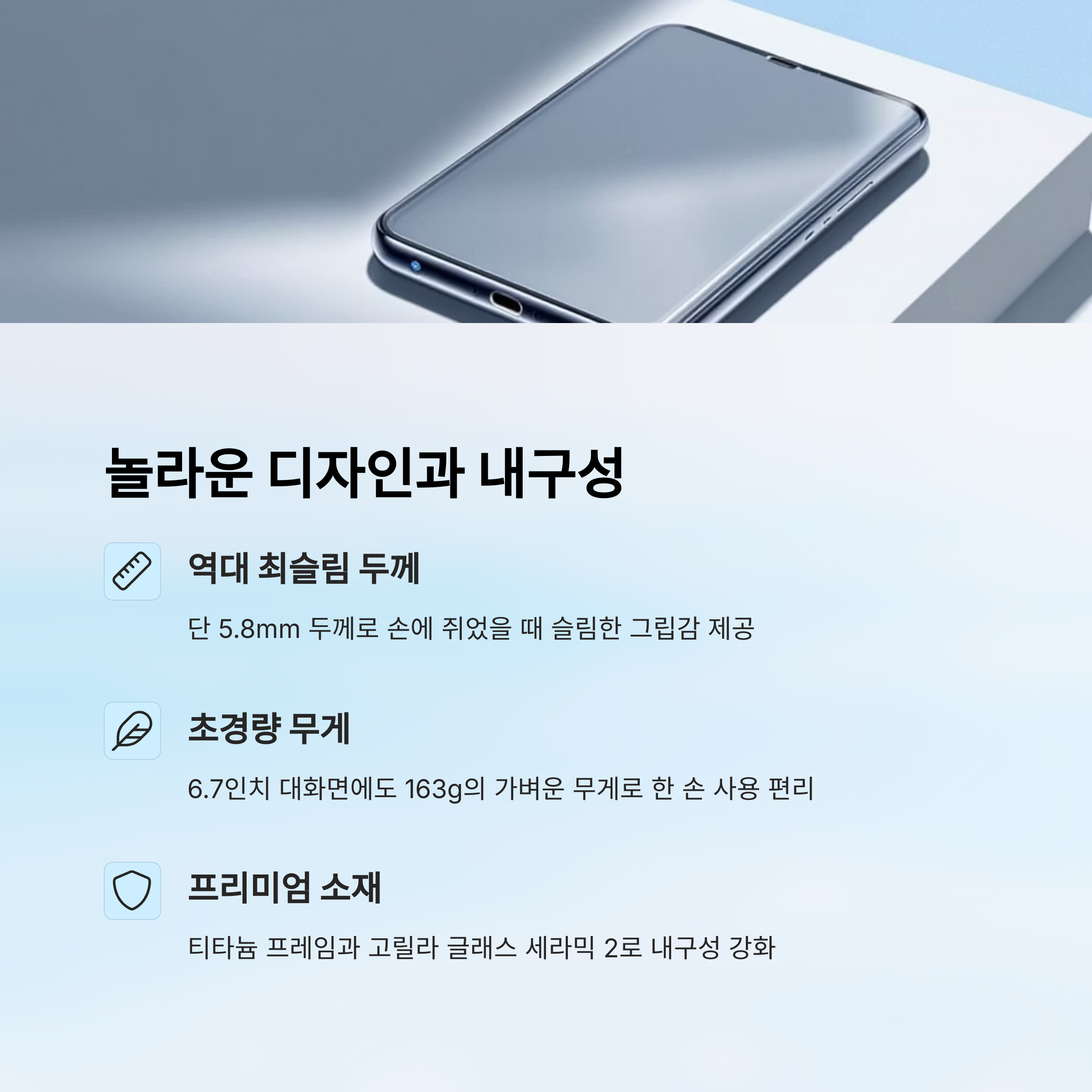 | 무게 | 163g (대화면 스마트폰 중 최경량급) |