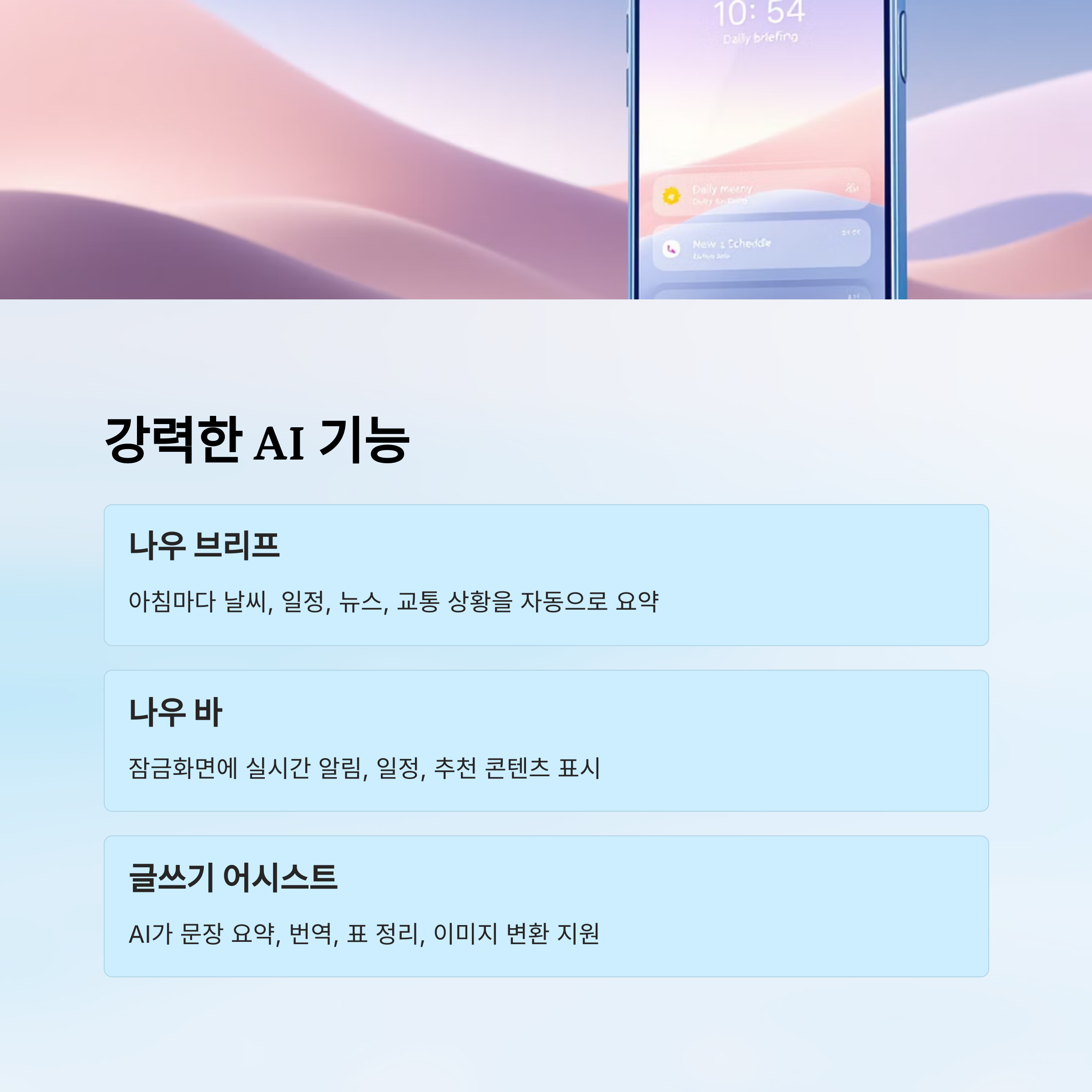 | 나우 브리프 | 일정, 날씨, 교통 등 정보를 아침마다 자동 요약 |