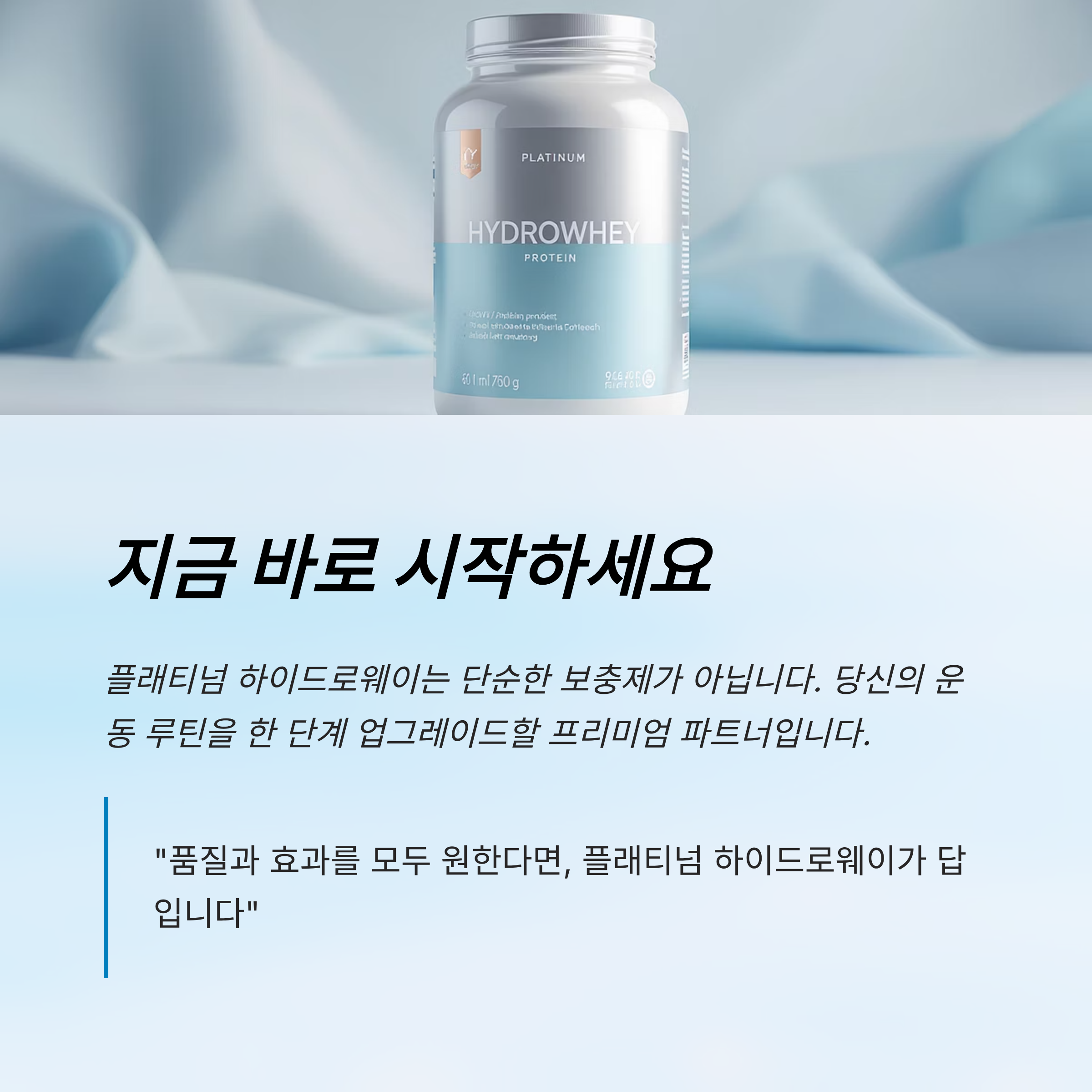 두 번째 추천 타이밍은 **아침 기상 직후**예요. 밤새 공복 상태였던 몸에 빠르게 흡수되는 단백질을 공급해주면, 근육 손실을 최소화할 수 있어요. 특히 플래티넘 하이드로웨이는 가수분해된 형태라 흡수가 빠르기 때문에 아침용으로 딱이에요.