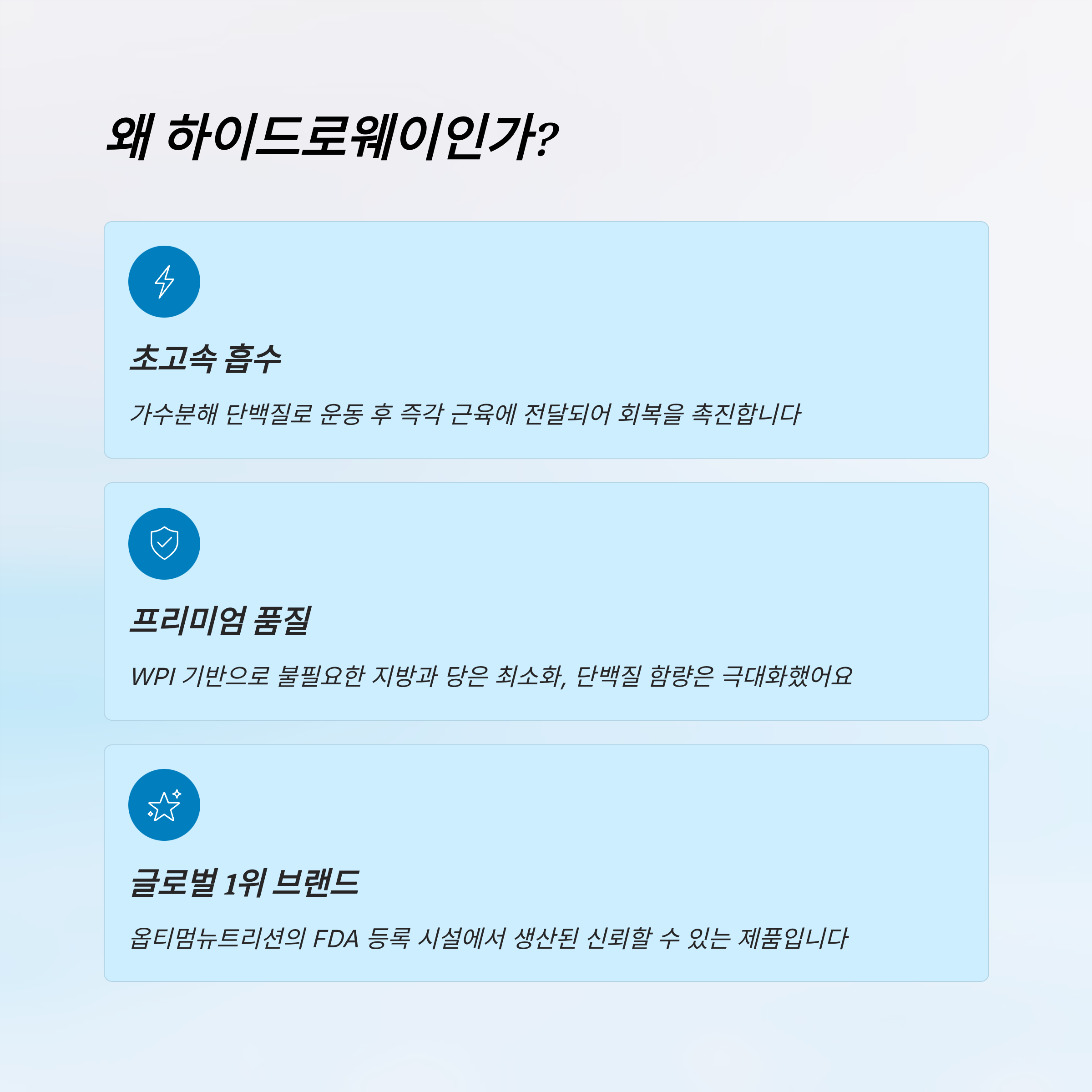 운동을 갓 시작한 초보자라면 처음에는 WPC로 가볍게 시작해볼 수 있어요. 하지만 몸에 단백질이 필요하다는 걸 느끼고, 회복력과 근육량 향상을 체감하고 싶다면 하이드로웨이로 넘어오는 게 자연스러운 진화랍니다.