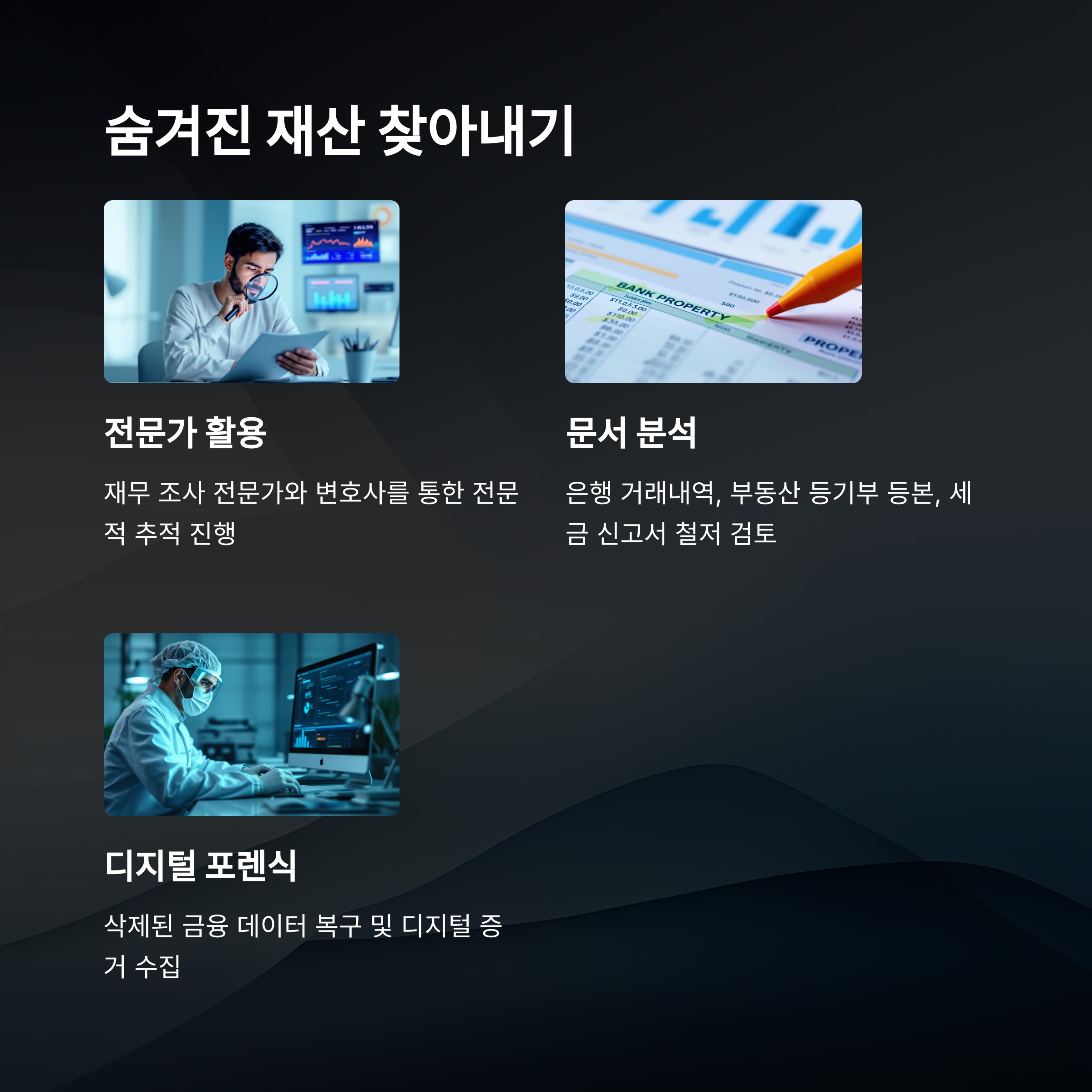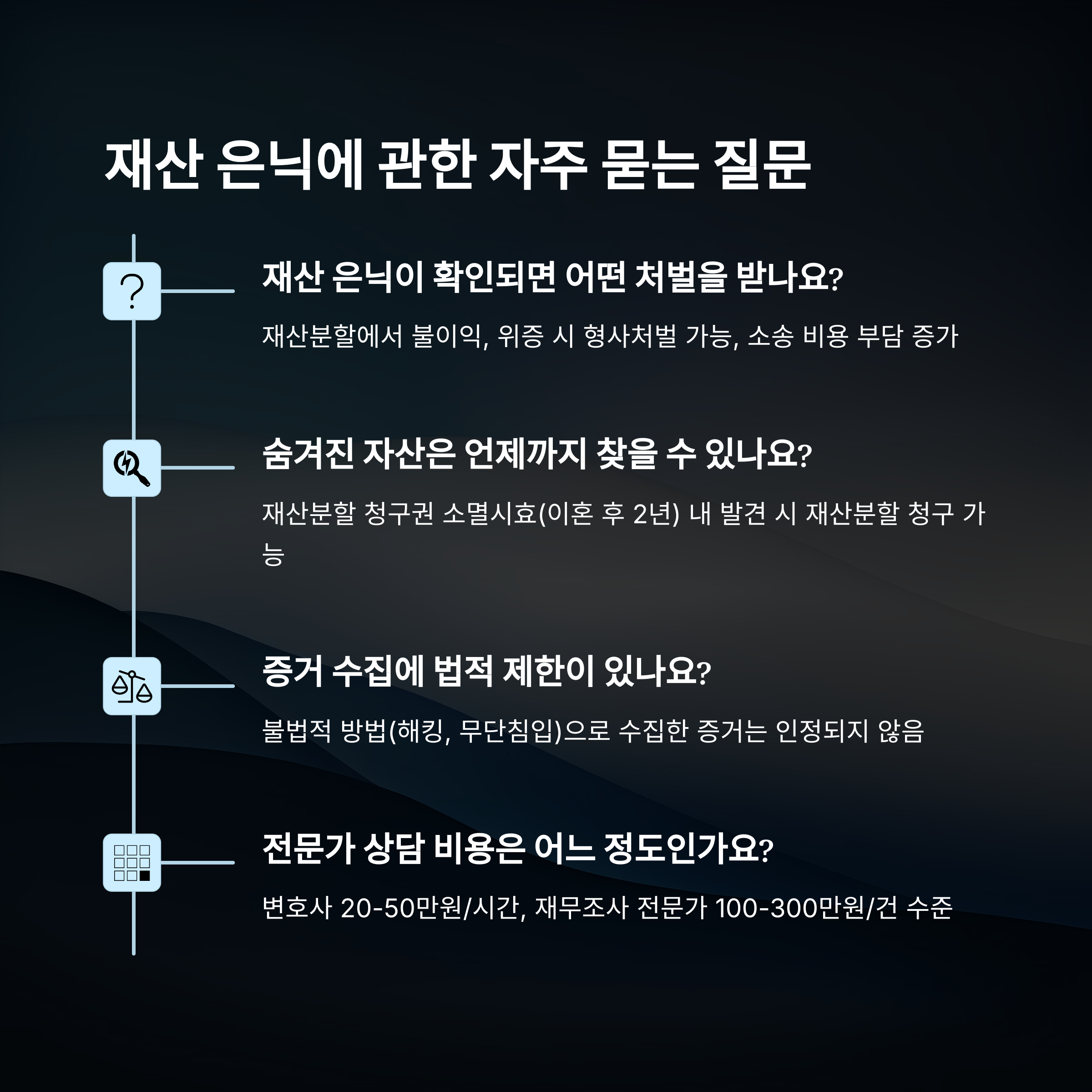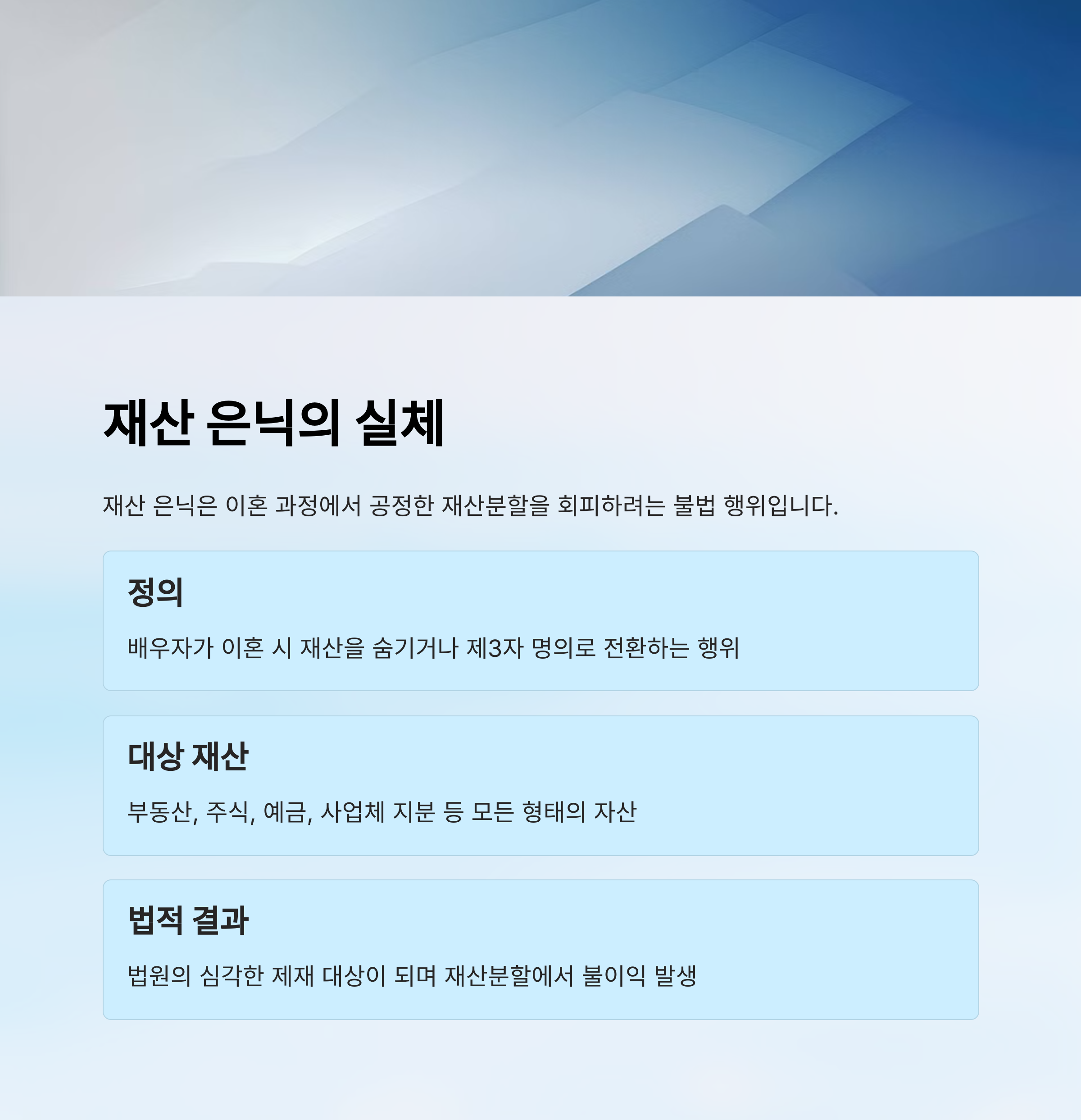 실제로 배우자가 명의신탁, 계좌 은닉, 가족 명의 이전 등 다양한 방법으로 재산을 숨기는 일이 많아요. 하지만 숨긴다고 끝나는 게 아니라는 점!