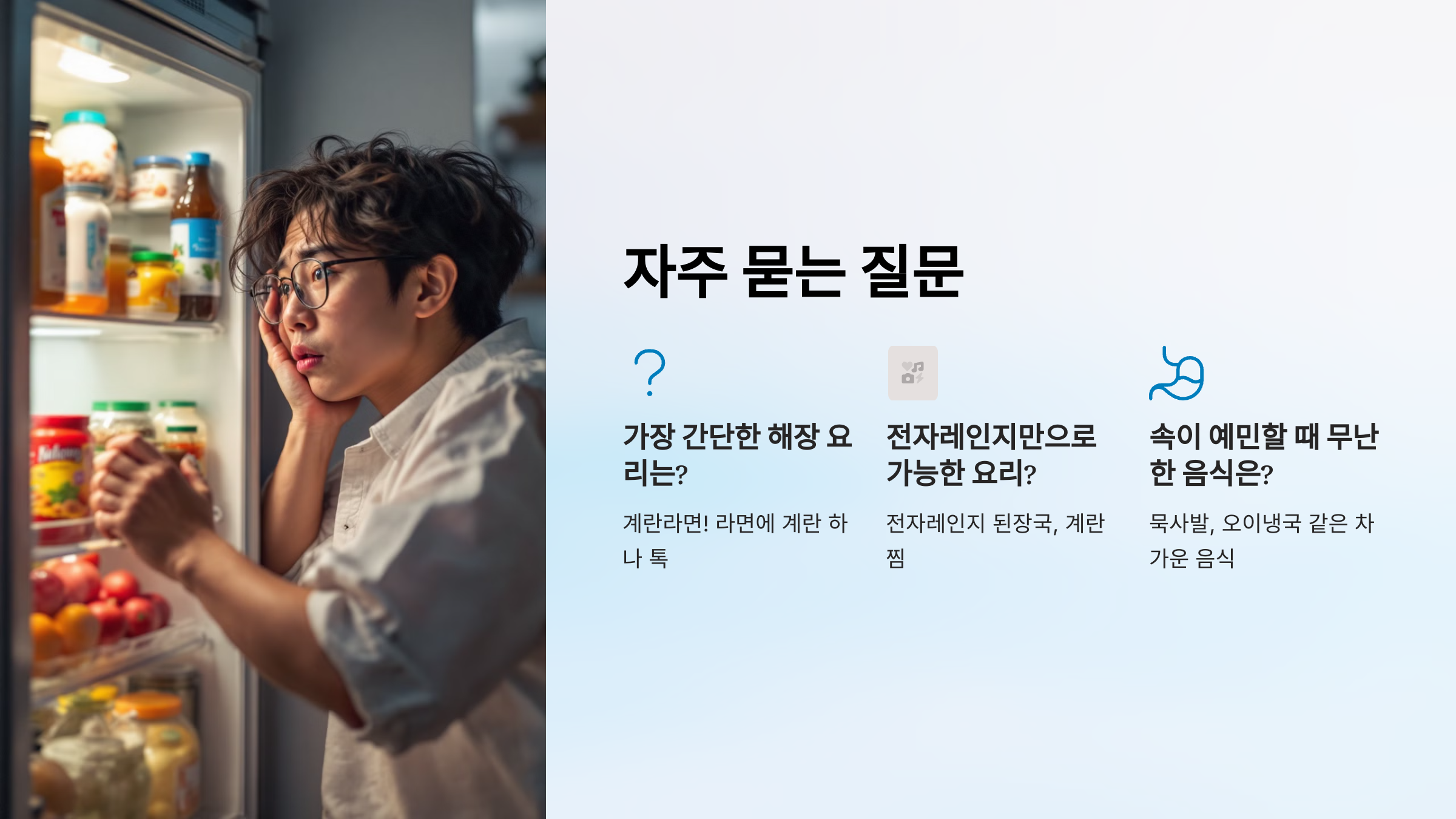 이제 마지막 코너, 자취생들이 가장 자주 묻는 ‘해장 요리 FAQ’로 마무리해볼게요! 😊