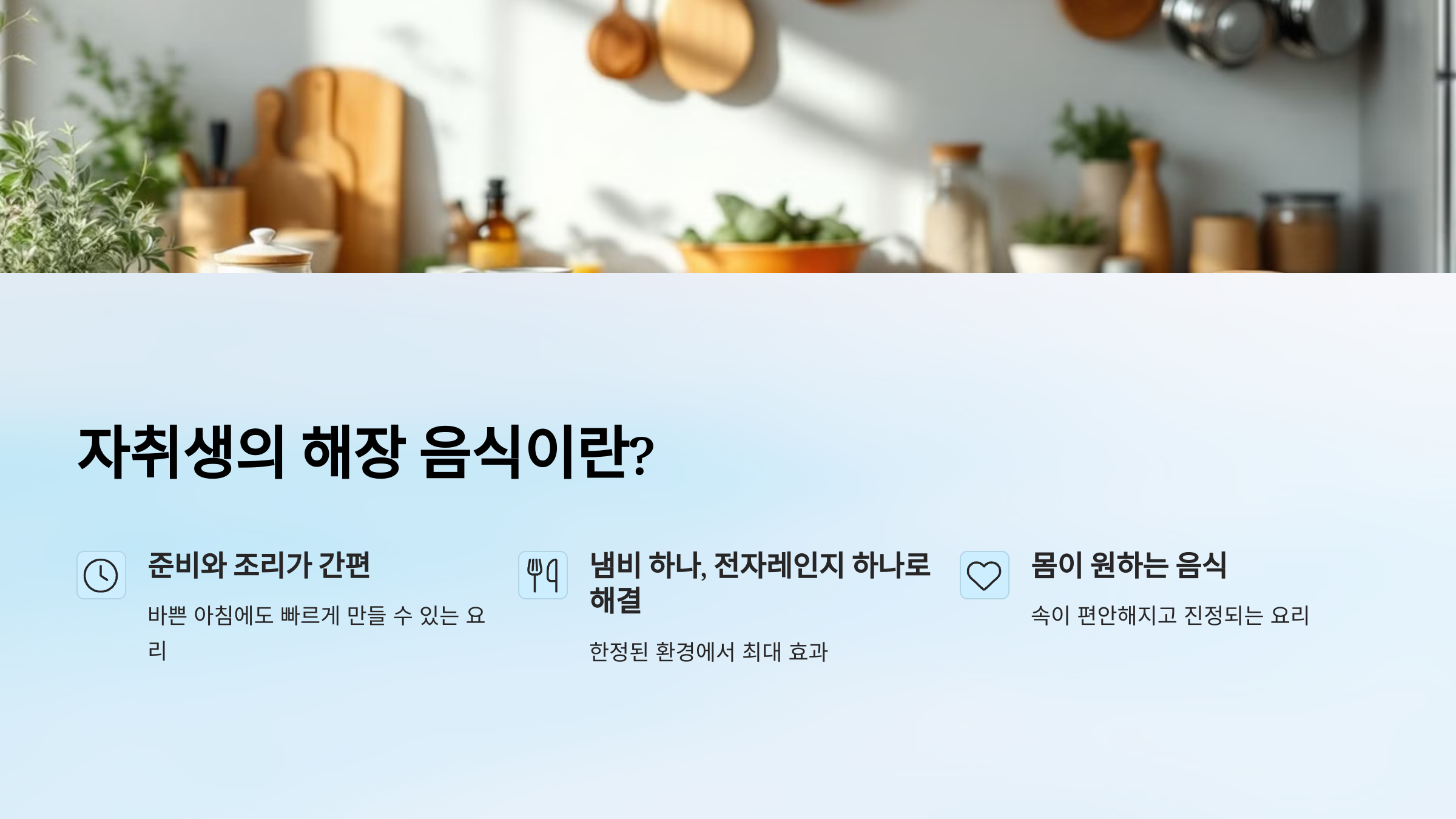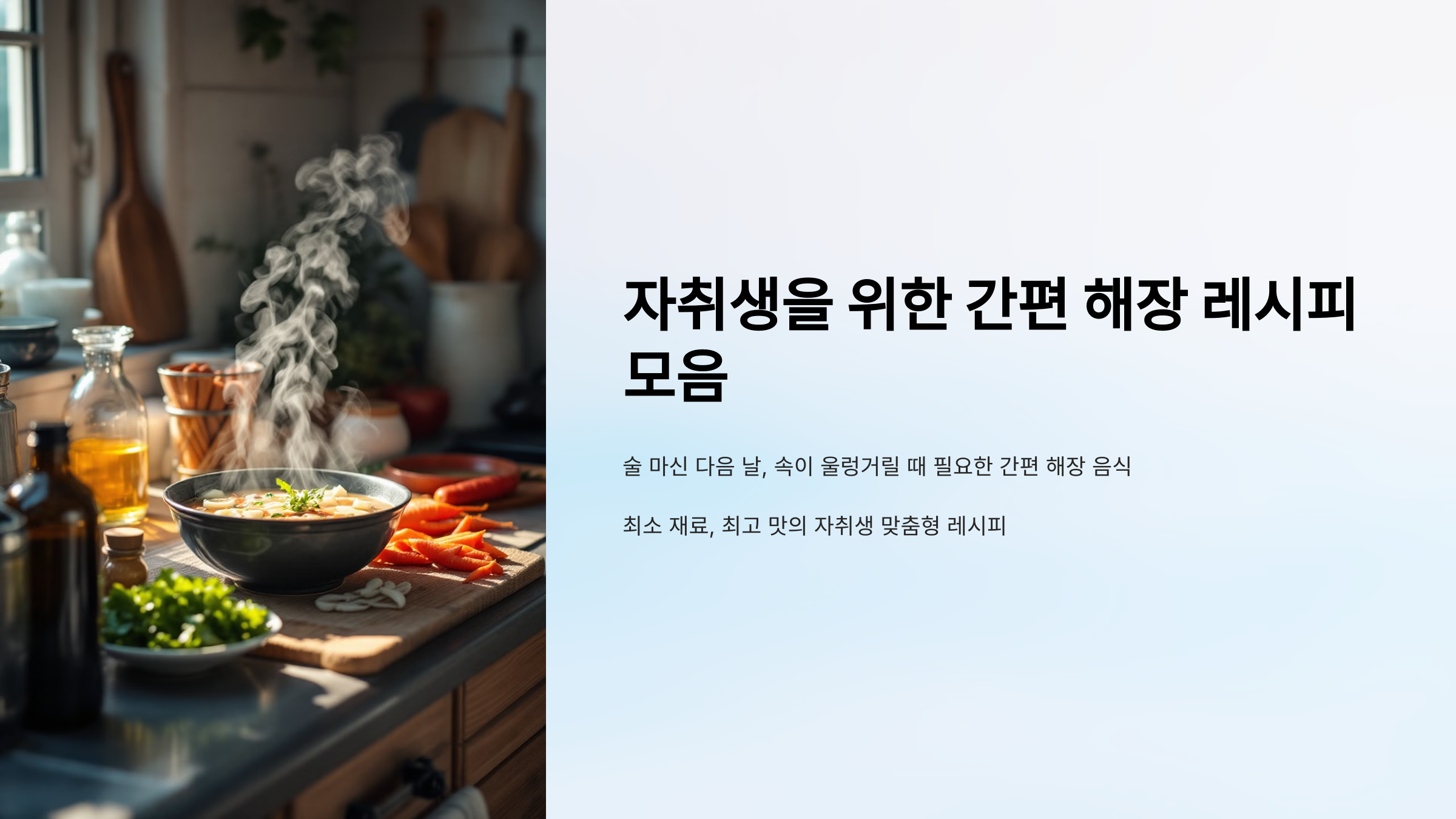 자취생의 해장 음식은 맛뿐만 아니라 준비와 조리가 간편해야 해요. 바쁜 아침이나 몸 상태가 좋지 않은 날에도 빠르게 만들 수 있는 것이 중요하죠.