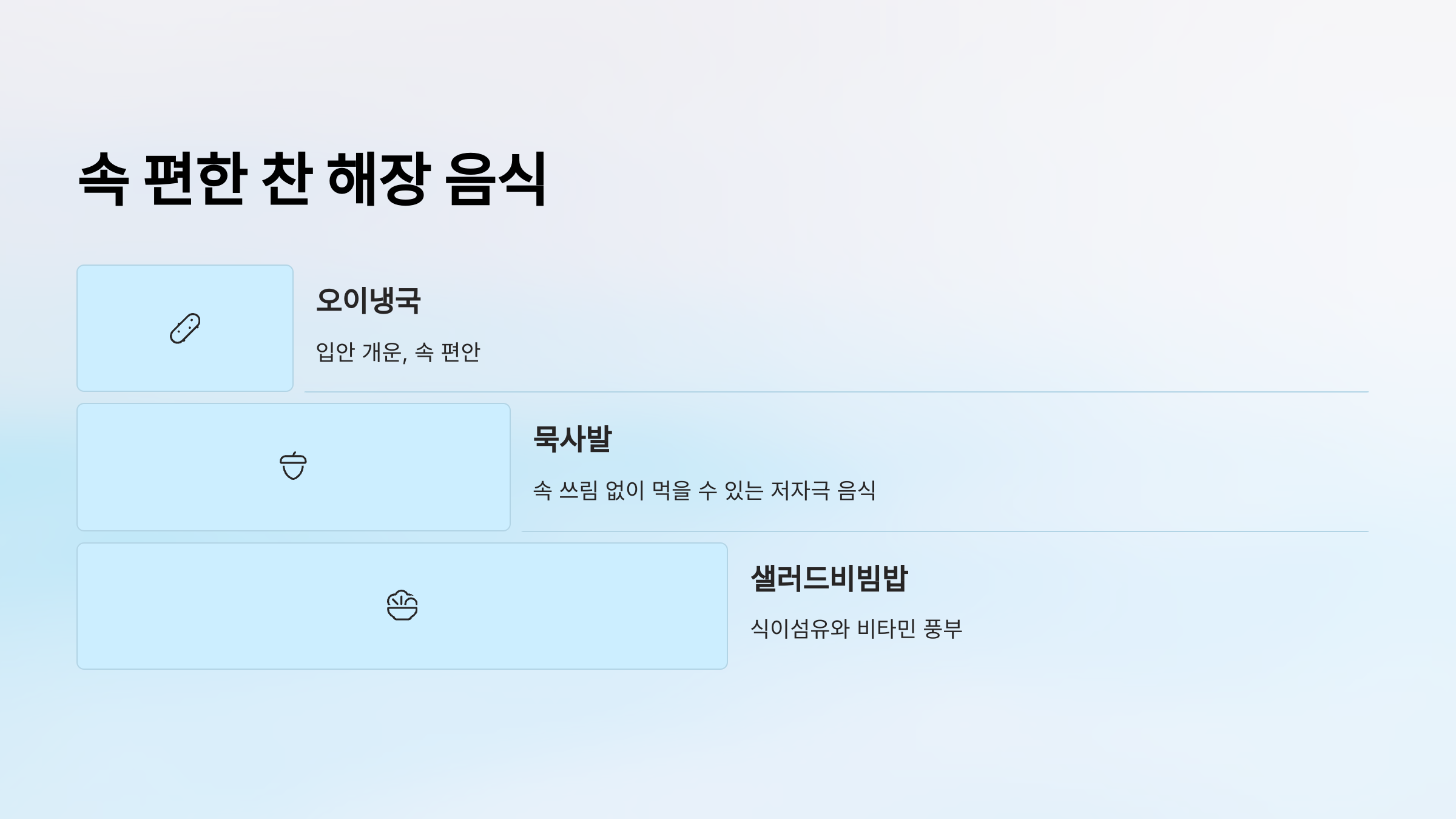 찬 음식도 훌륭한 해장 선택이 될 수 있다는 것, 오늘부터 실천해보세요! 🙌