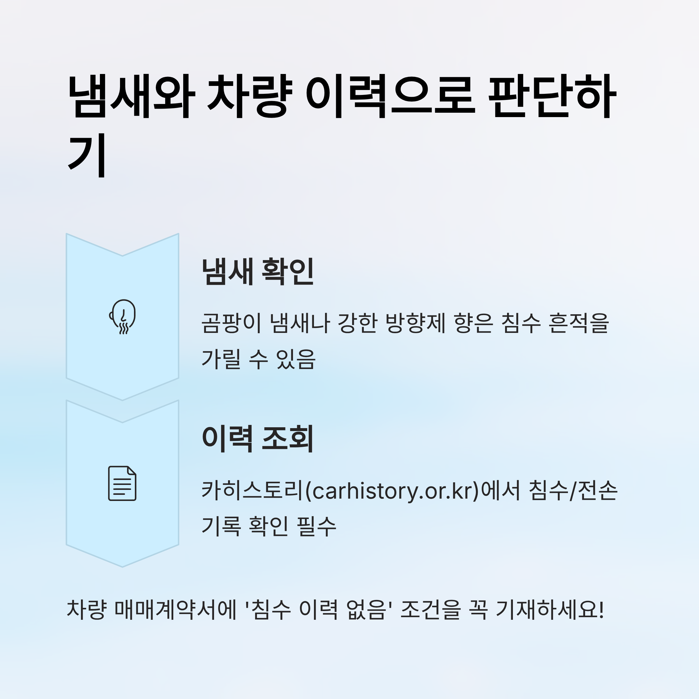 침수 이력을 숨기고 판매하는 사례가 여전히 존재하기 때문에, 구매자가 직접 확인할 수 있는 지식을 갖추는 게 중요해요. 간단한 외관 점검부터 차량 서류 조회까지 꼼꼼하게 체크해야 피해를 막을 수 있어요.
