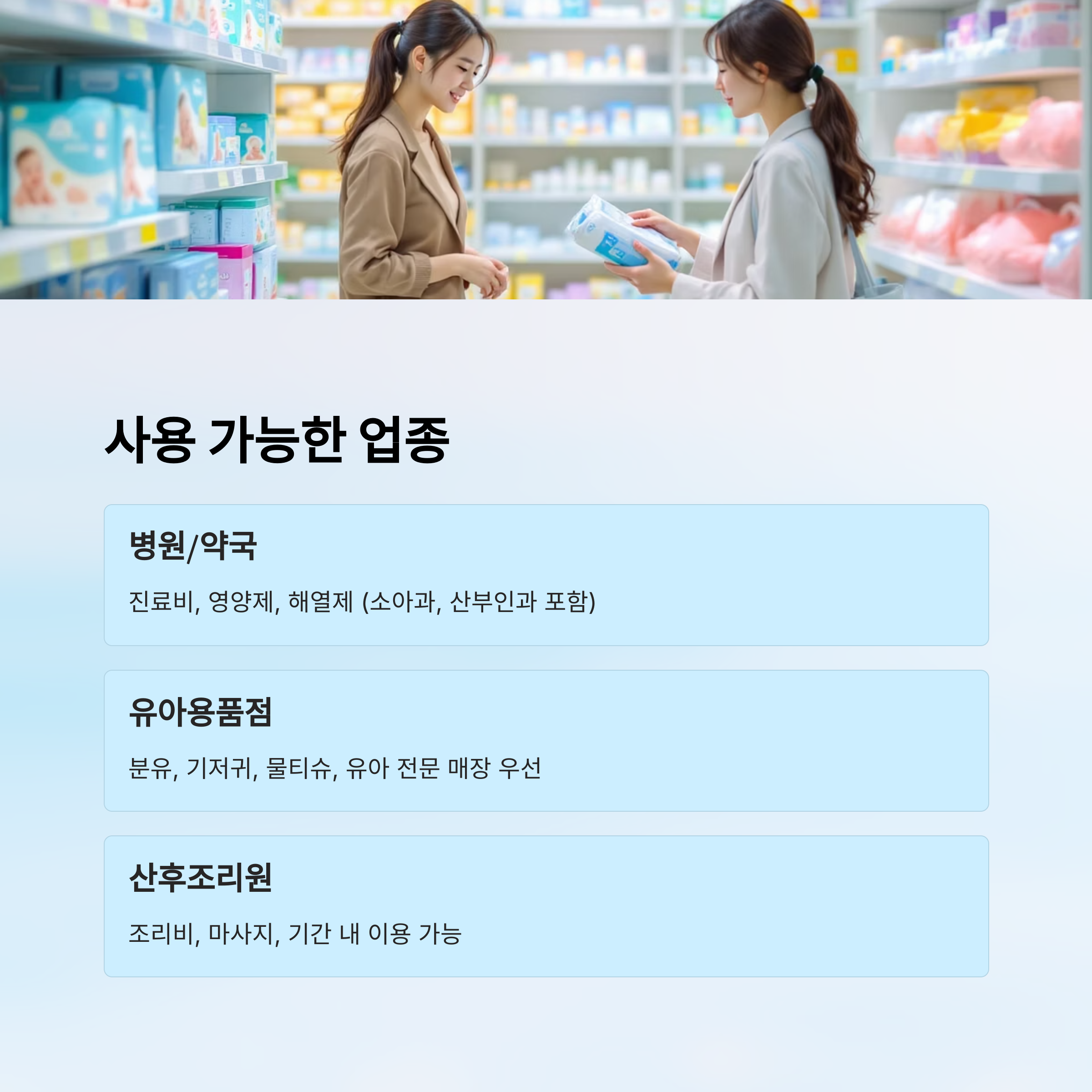 전국 대부분의 약국, 산부인과, 소아청소년과, 유아용품 전문매장 등에서 사용 가능해요. 특히 유아 전문 브랜드 매장이나 온라인 쇼핑몰에서도 제휴가 되어 있으면 사용이 가능하죠. 온라인은 대부분 국민행복카드로 결제하면 자동 적용돼요.