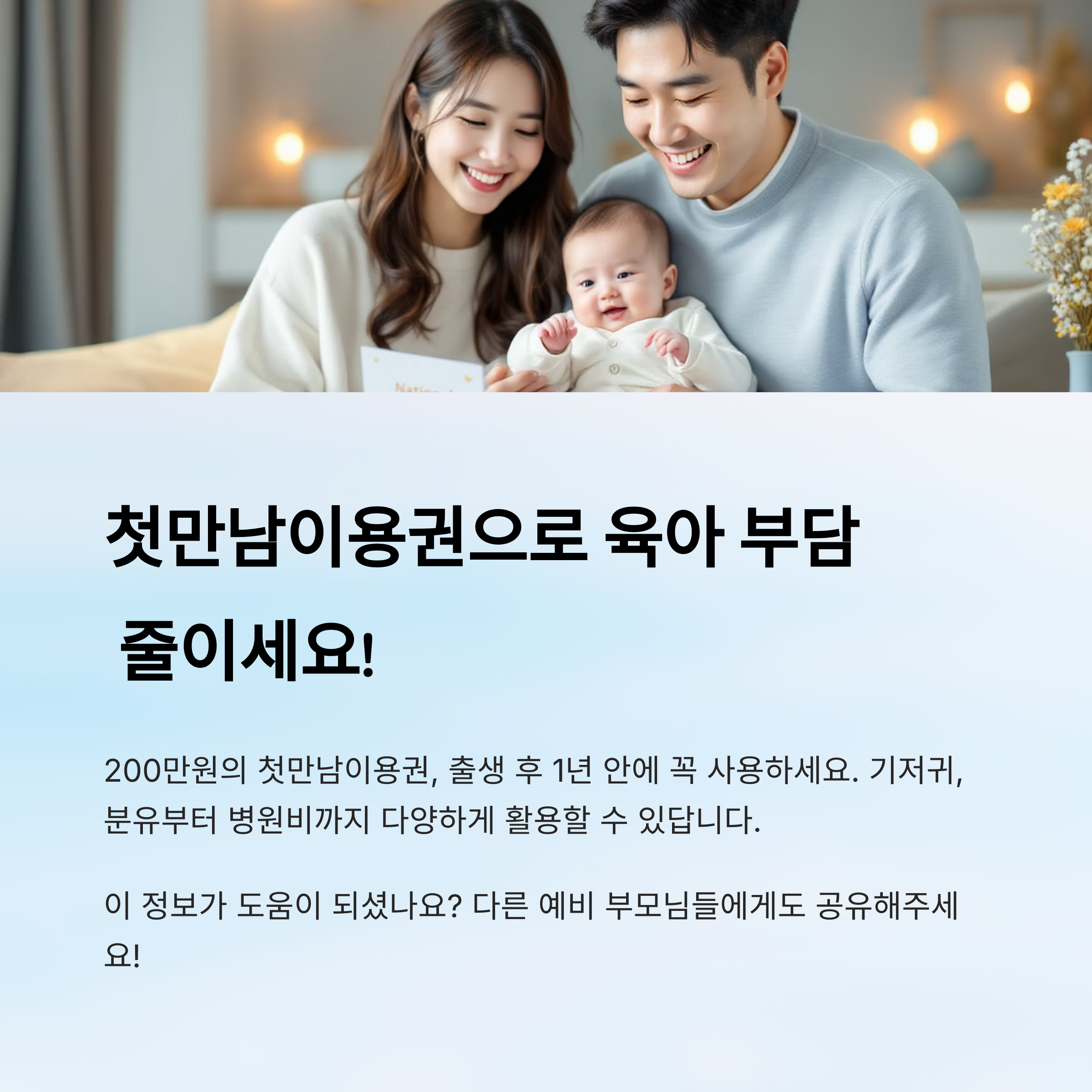 📋 목차첫만남이용권이란?사용 가능한 업종은?사용 제한 업종 안내사용 시 주의사항사기 피해 예방법현명한 사용 꿀팁 🍯FAQ 🎁 '첫만남이용권'은 정부가 출산 장려를 위해 제공하는 바우처예