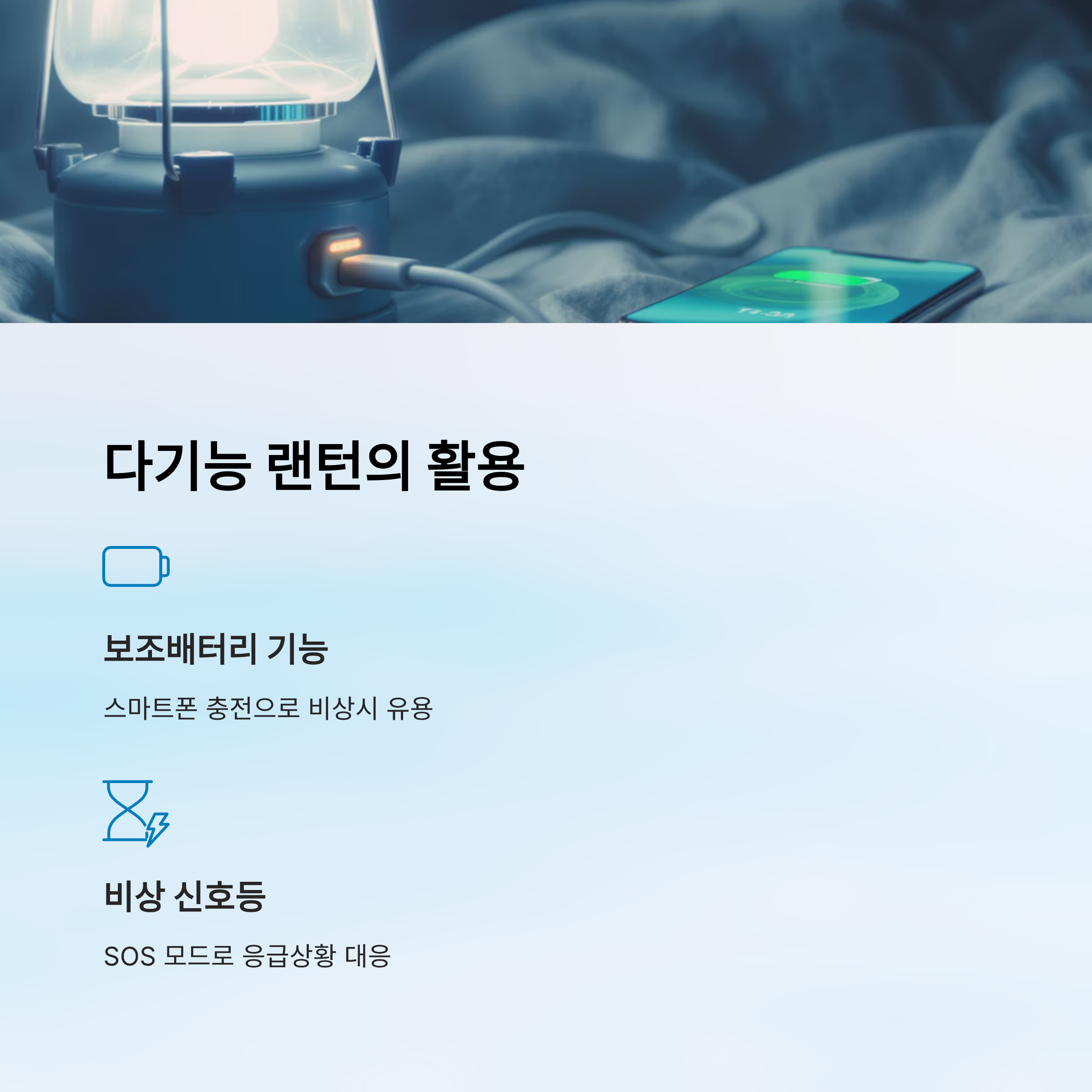 ✔ 보조배터리 기능이 있는 랜턴을 선택하면 짐을 줄일 수 있습니다.