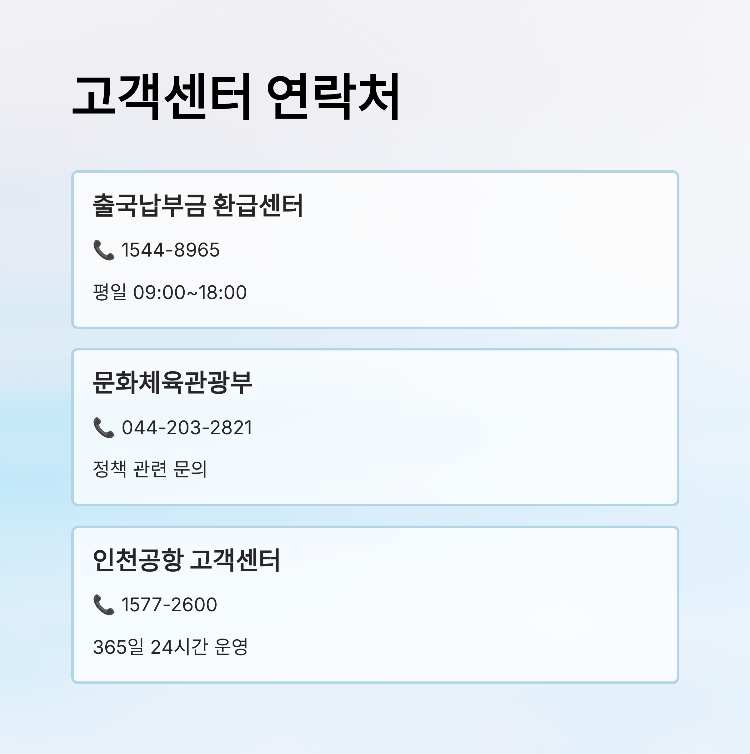 출국납부금 환급 신청 중 오류가 생기거나, 환급이 지연될 때는 빠르게 고객센터에 문의해보는 게 가장 정확해요. 각 기관마다 담당 부서가 다르기 때문에 필요한 연락처를 알고 있는 게 중요하답니다. 📞