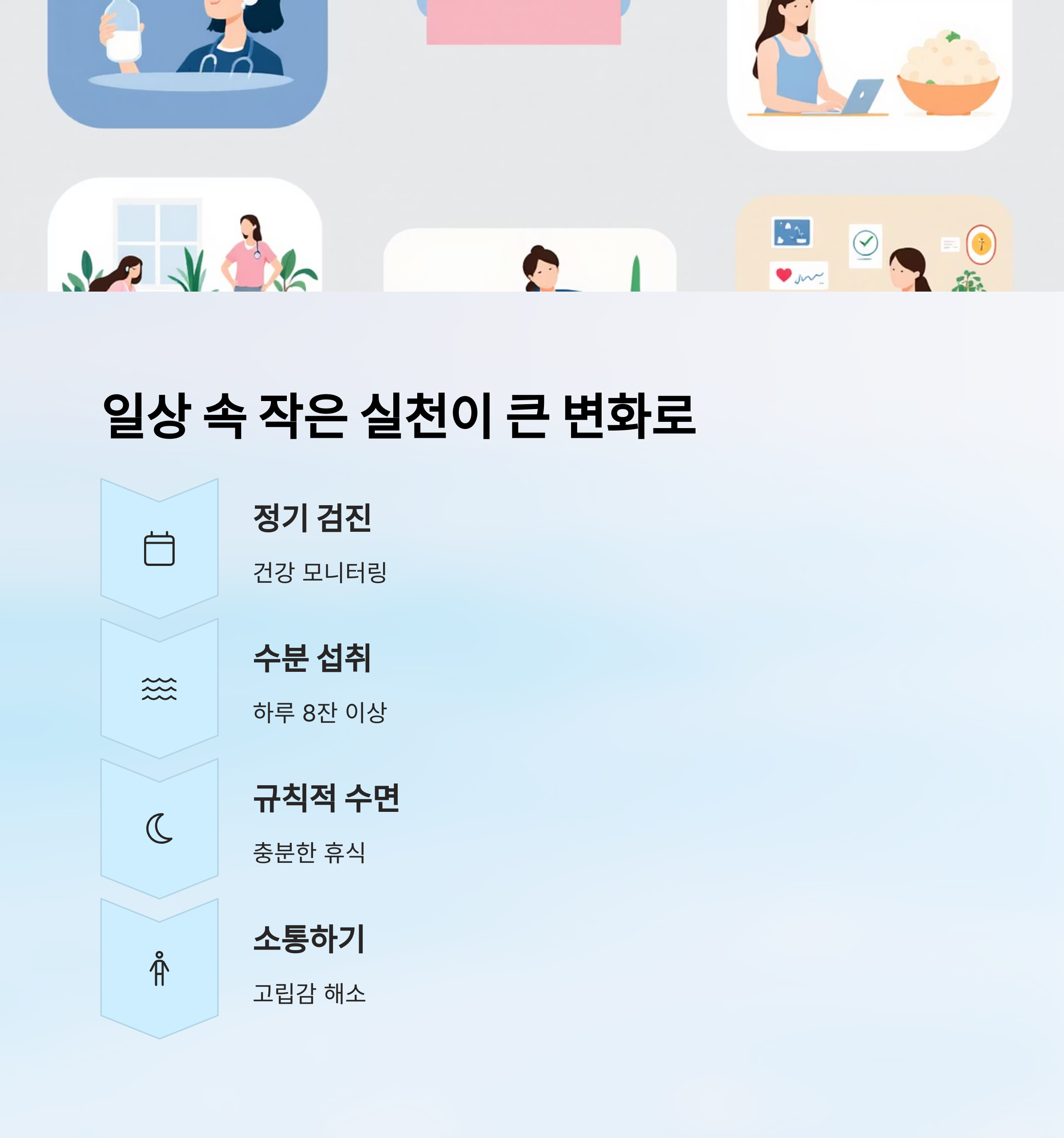 이렇게 보면 건강은 결국 일상의 연장선이에요. 거창하지 않아도 충분히 바꿀 수 있는 것부터 하나씩 실천해봐요! 🌟