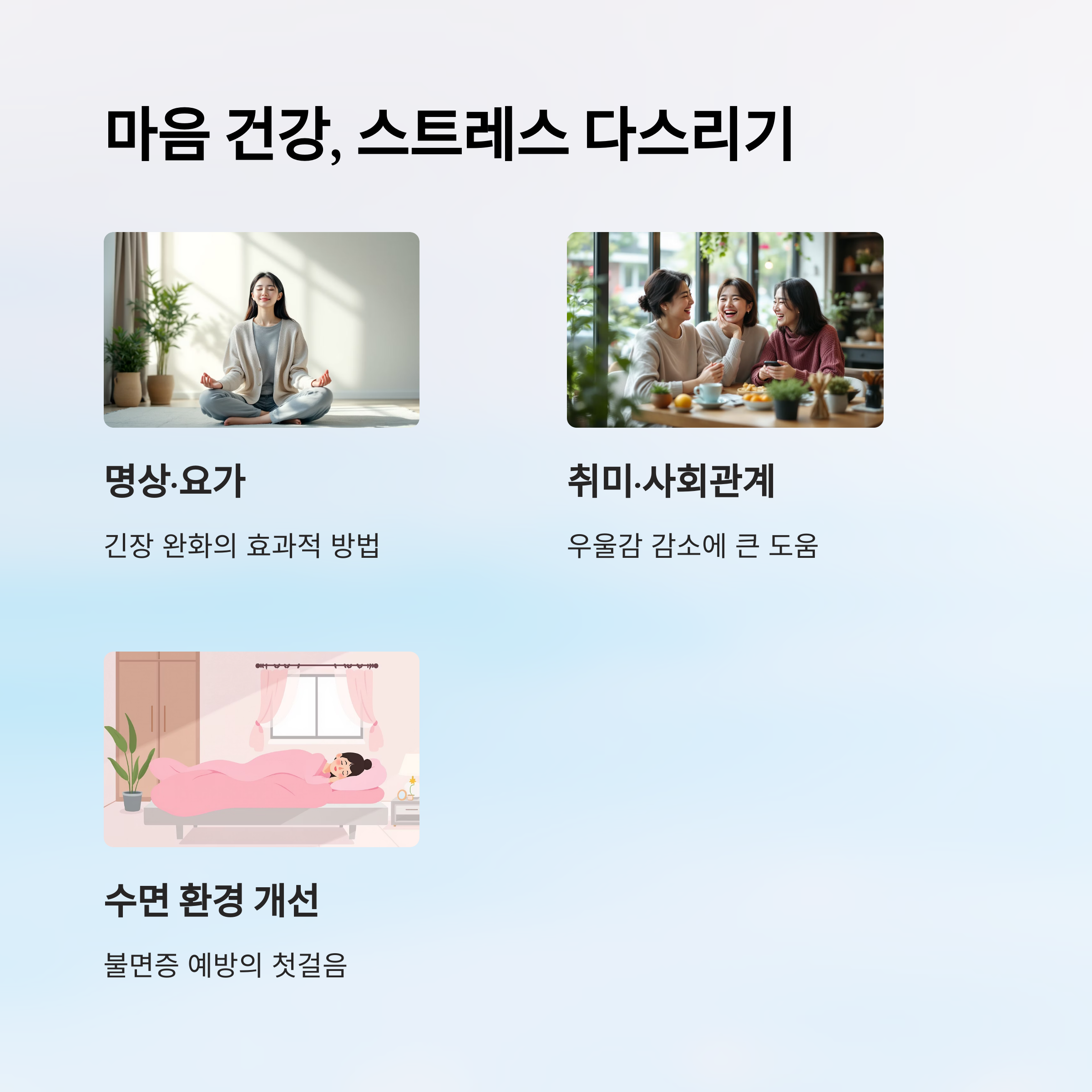마음 건강은 나이와 상관없이 평생 관리가 필요한 부분이에요. 특히 갱년기처럼 예민한 시기에는 더욱 신경 써야 해요.