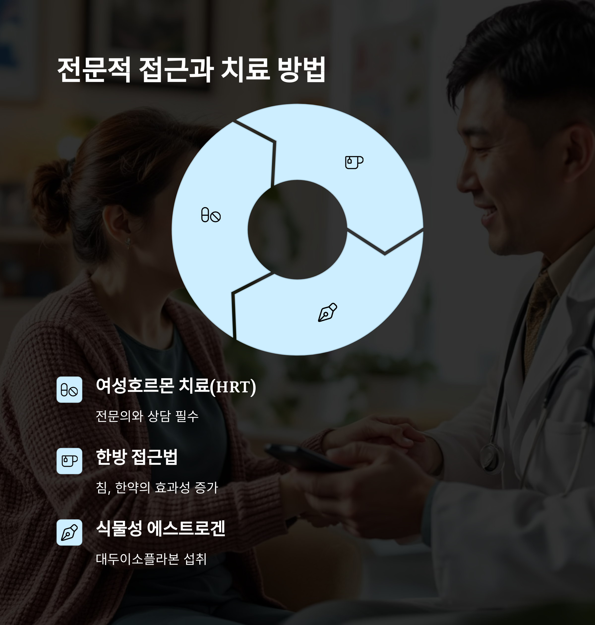 | 한약 치료 | 호르몬 조절, 기력 보강 | 한의사 진단 필수 |