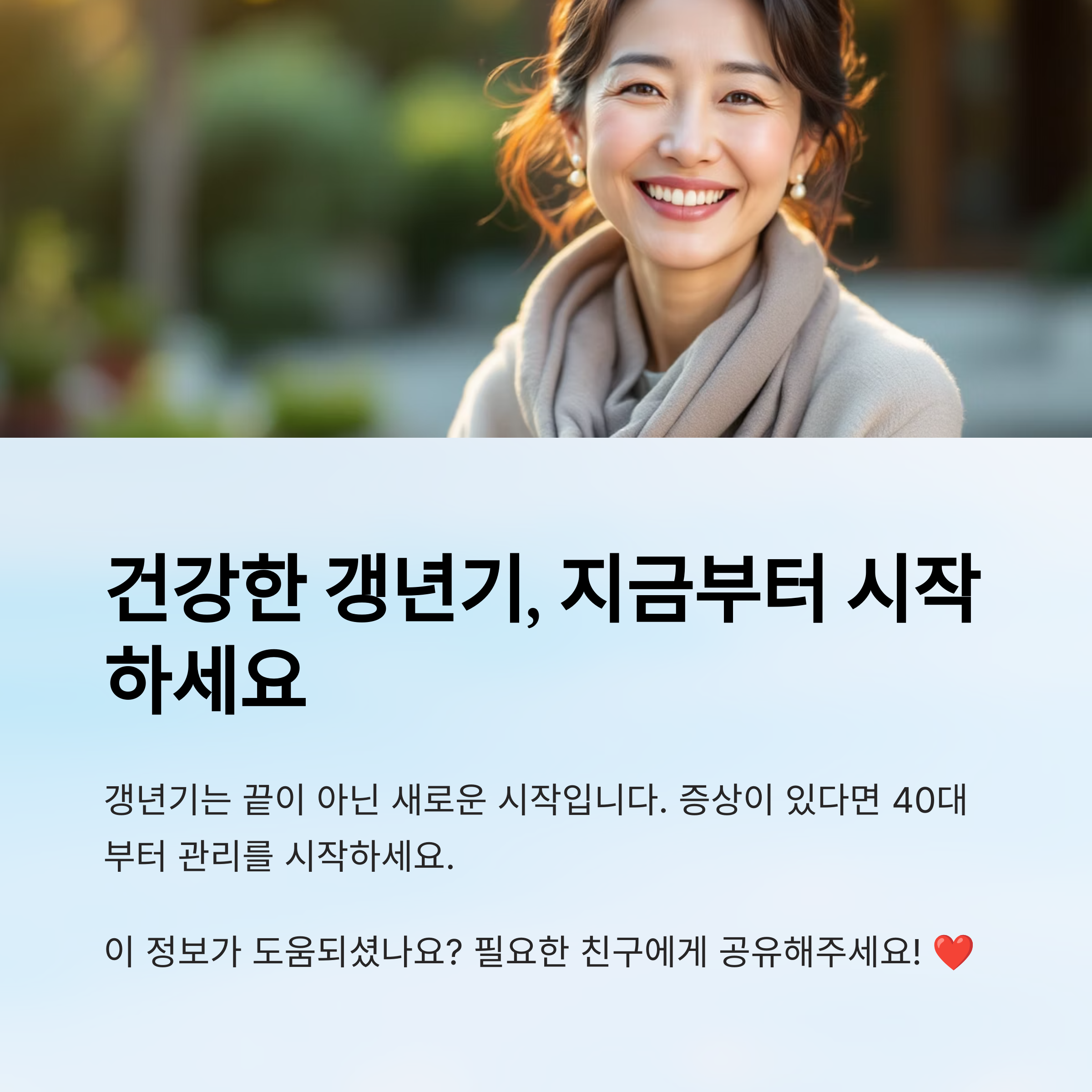 갱년기는 결코 병이 아니에요. 하지만 몸과 마음이 예민해지는 시기인 만큼 철저한 관리와 주변의 이해가 필요한 시기랍니다. 🧡