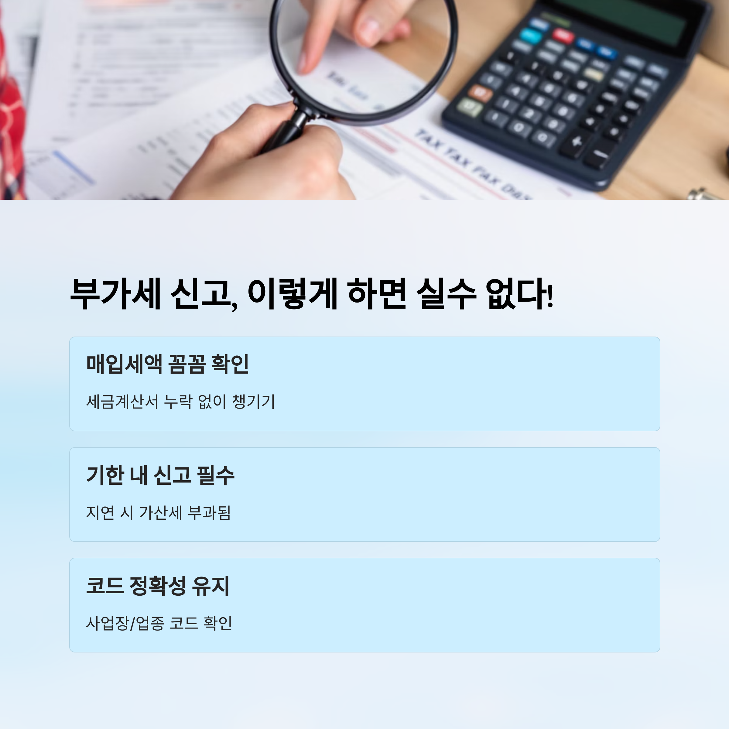 소상공인이라면 꼭 챙겨야 할 세금 중 하나가 바로 부가가치세예요. 연 2회(1월, 7월) 신고하는데, 여기서 실수하면 ‘가산세’까지 붙어서 낭패 보기 쉬워요. 😰