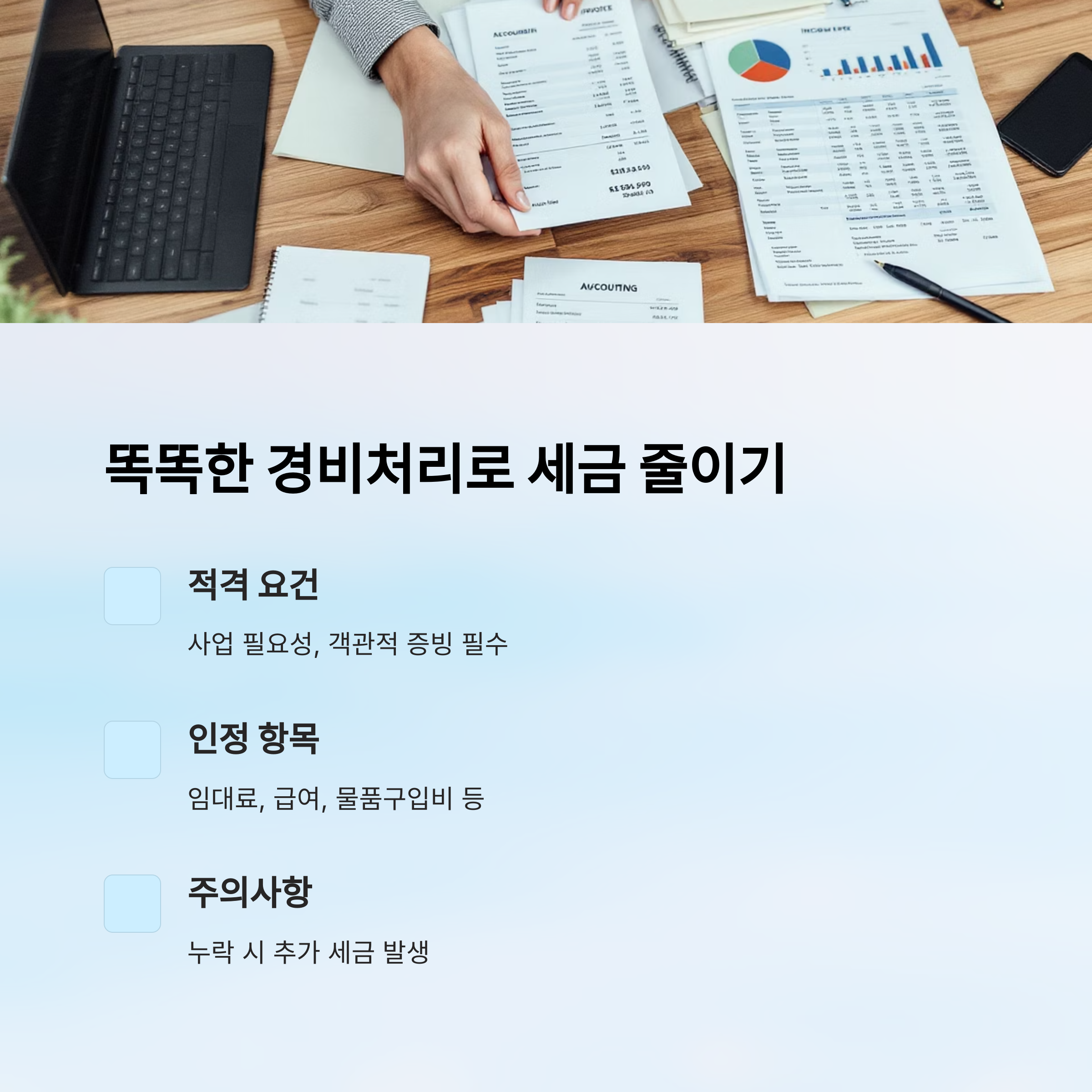 경비로 인정받을 수 있는 건 ‘사업과 관련 있는 지출’이에요. 사업과 무관하거나 증빙이 부족하면 경비에서 제외돼서 오히려 더 내게 돼요. 🧨