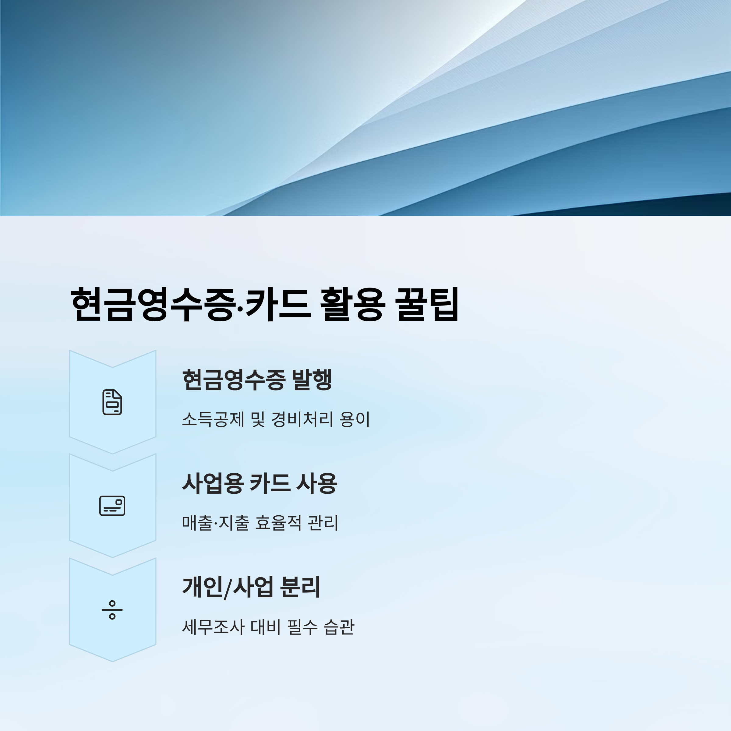 | 사업자카드 | 사업 전용 카드로 모든 비용 결제 | 경비 인정 + 부가세 환급 |