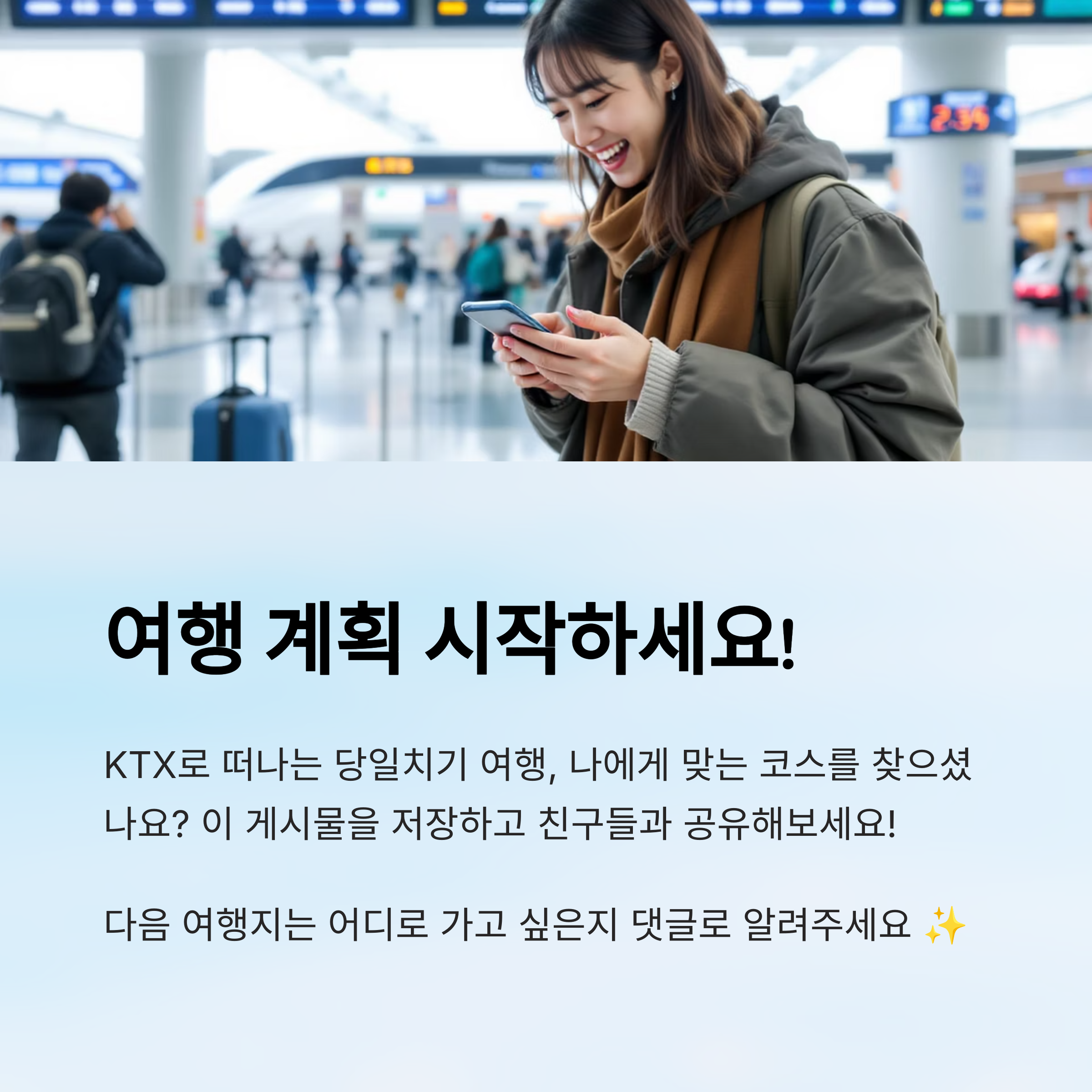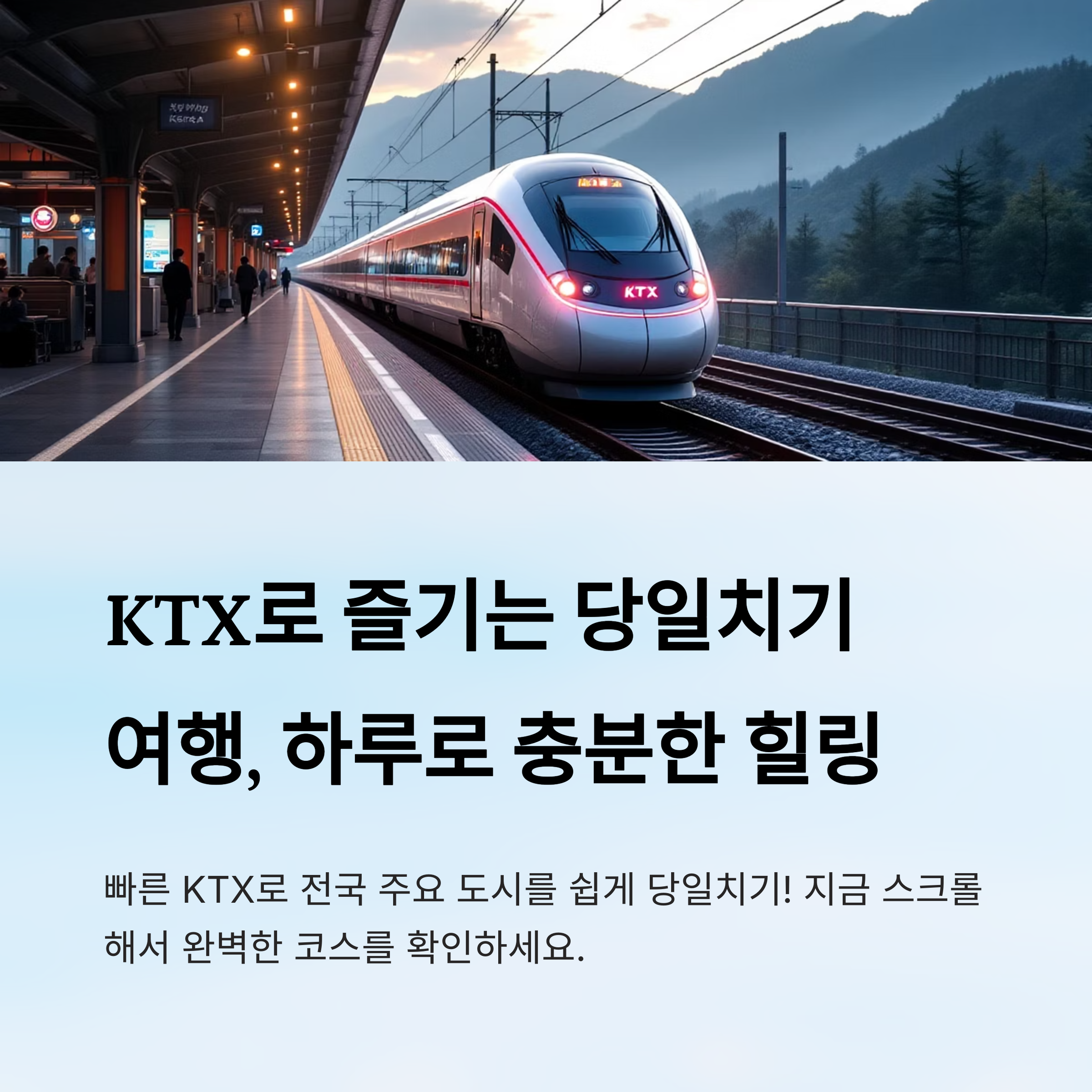 지금 바로 떠날 수 있는 가볍고 실속 있는 여행, 그게 바로 KTX 당일치기 여행의 진짜 매력이에요.
