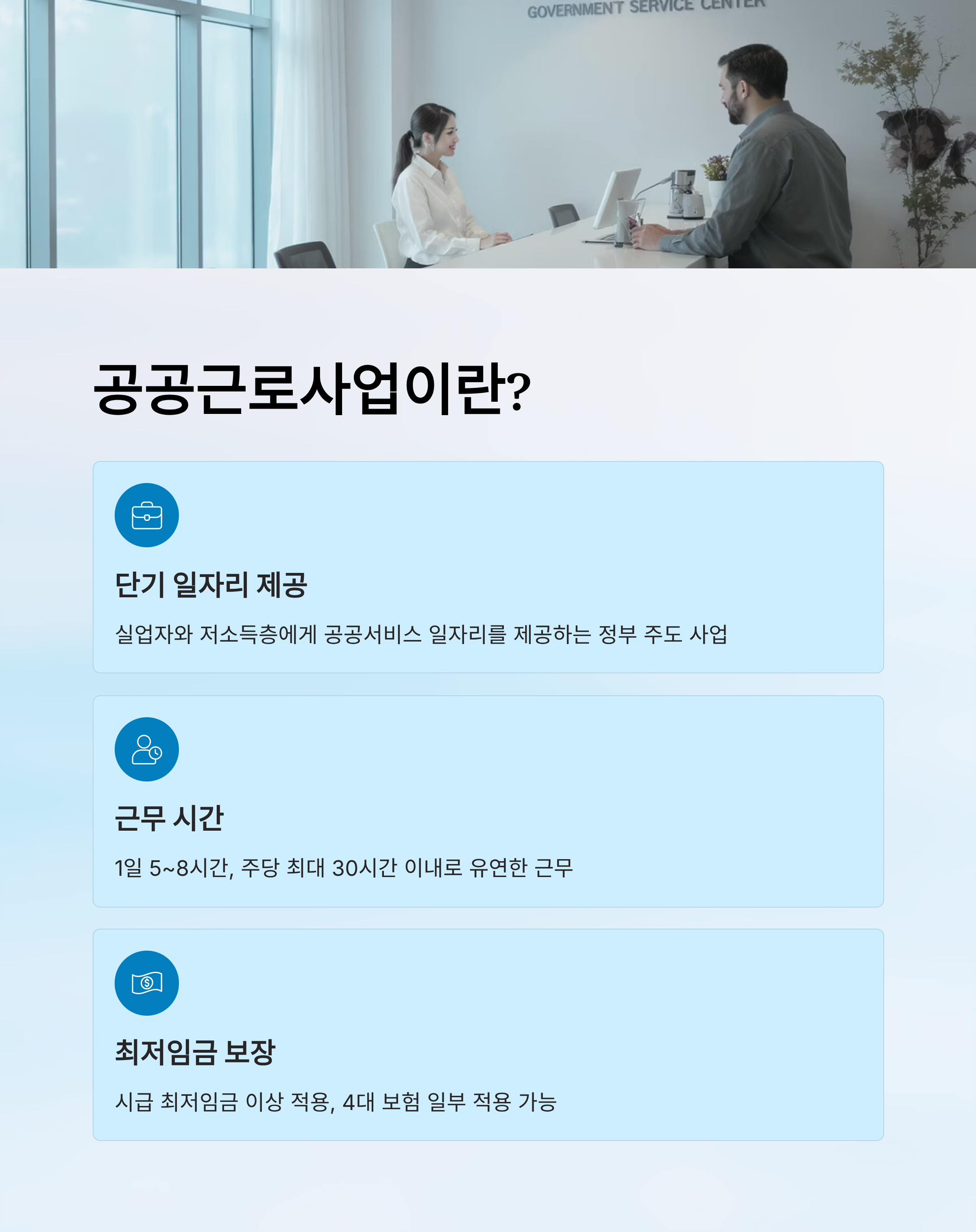 본 콘텐츠는 2025년 기준 공공근로사업 관련 정보를 바탕으로 작성된 참고용 안내 자료입니다. 실제 조건, 일정, 금액은 지자체나 정부 정책 변화에 따라 달라질 수 있으니, 반드시 최신 공고문 및 주민센터 상담을 통해 최종 확인하세요.