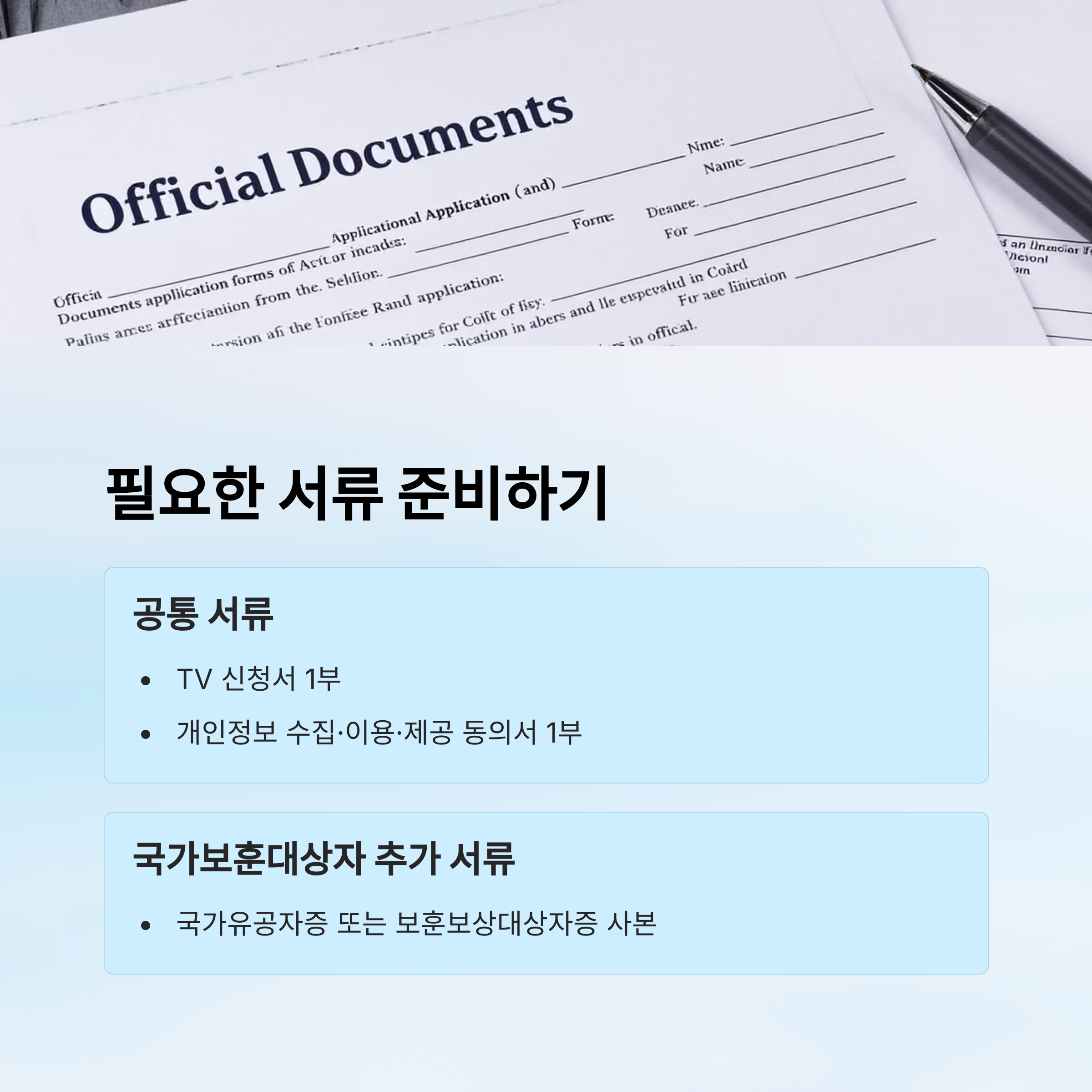 ④ 필요 서류 준비 및 제출 – 신청서, 동의서, 보훈 관련 서류(해당자만) 등