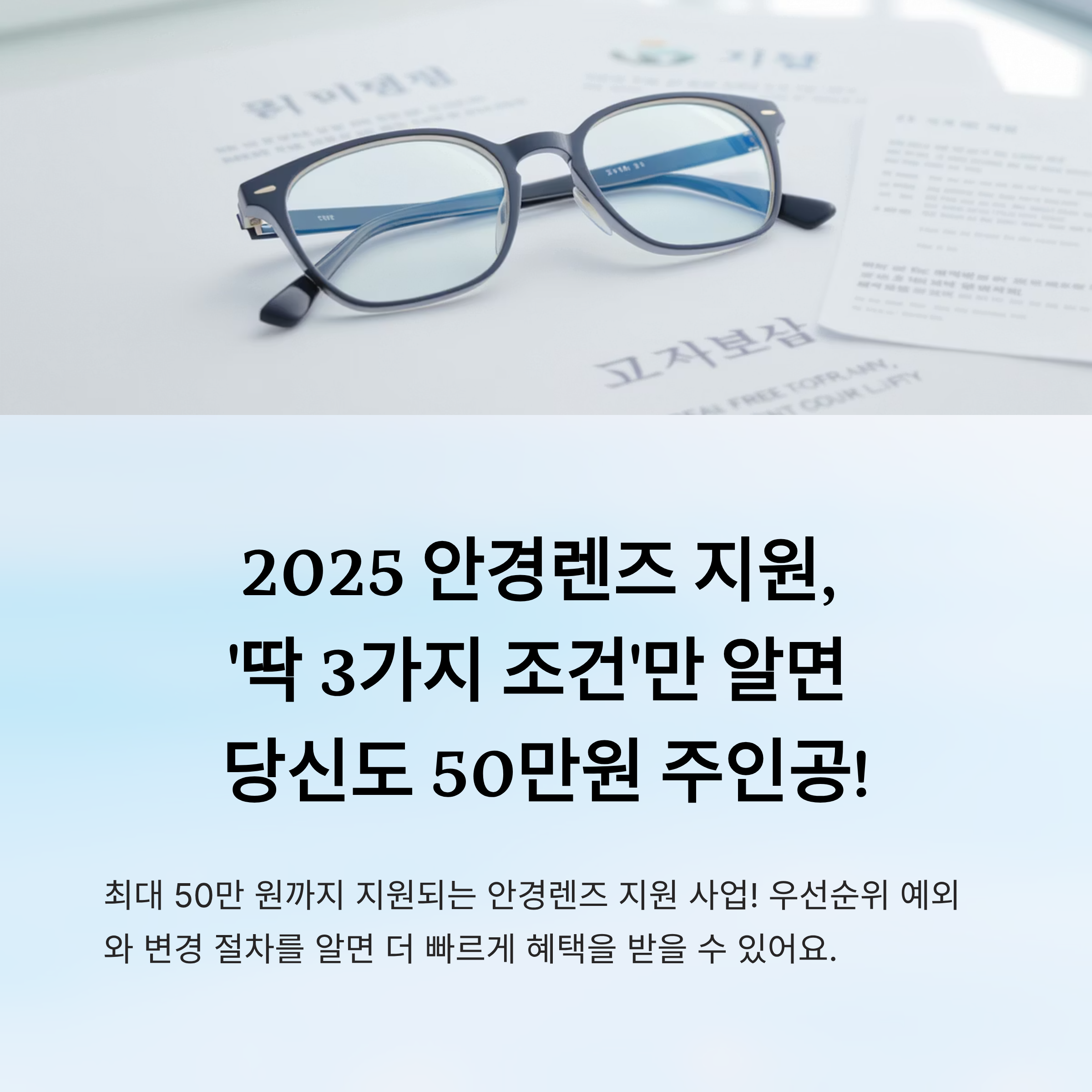 📢 안내사항: 본 글은 2025년 기준 안경렌즈 지원사업 관련 정보를 바탕으로 작성된 콘텐츠이며, 지자체의 조례 변경이나 정부 방침에 따라 실제 내용과 일부 차이가 발생할 수 있어요. 정확한 최신 정보는 반드시 관할 주민센터나 보건소, 또는 정부24를 통해 확인해 주세요.
