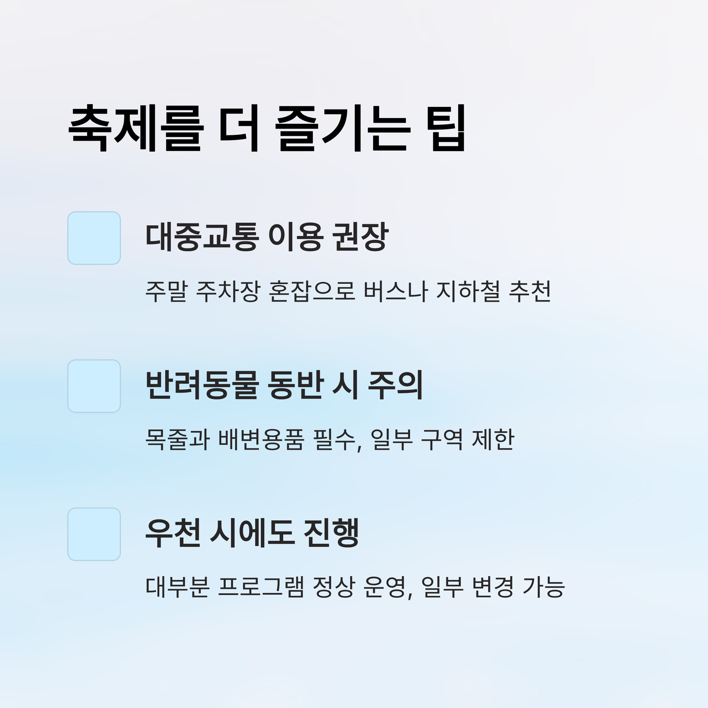 📌 본 글은 축제 안내와 여행 계획을 돕기 위한 정보 제공 목적이며, 실제 프로그램 및 일정은 현장 상황에 따라 변동될 수 있어요. 최신 정보는 반드시 공식 홈페이지를 확인해 주세요.