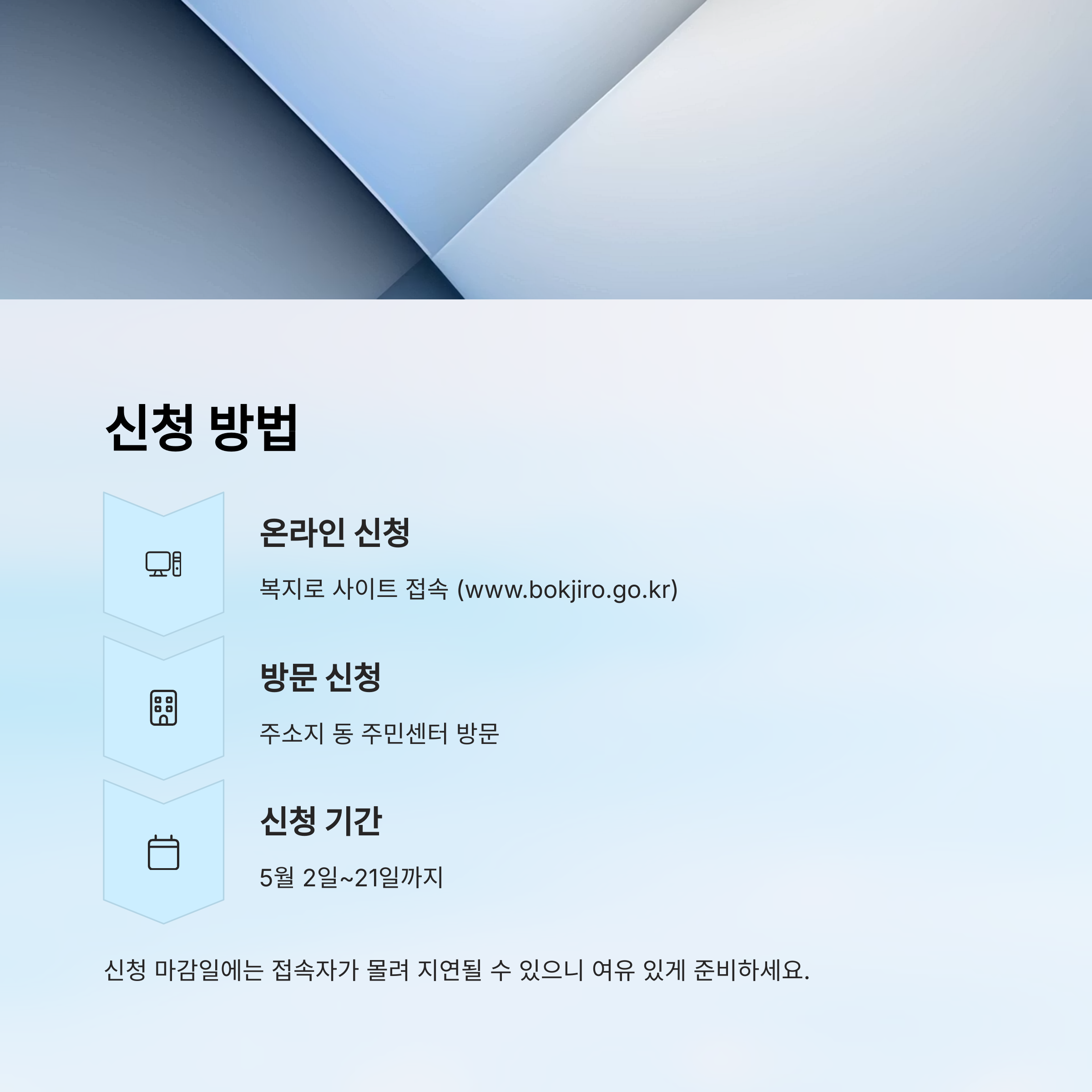 신청 마감일에는 접속자가 몰려 사이트가 느릴 수 있으니 여유 있게 서두르는 게 좋아요. 주민센터도 줄이 길어질 수 있어서 미리 가면 훨씬 수월하답니다!
