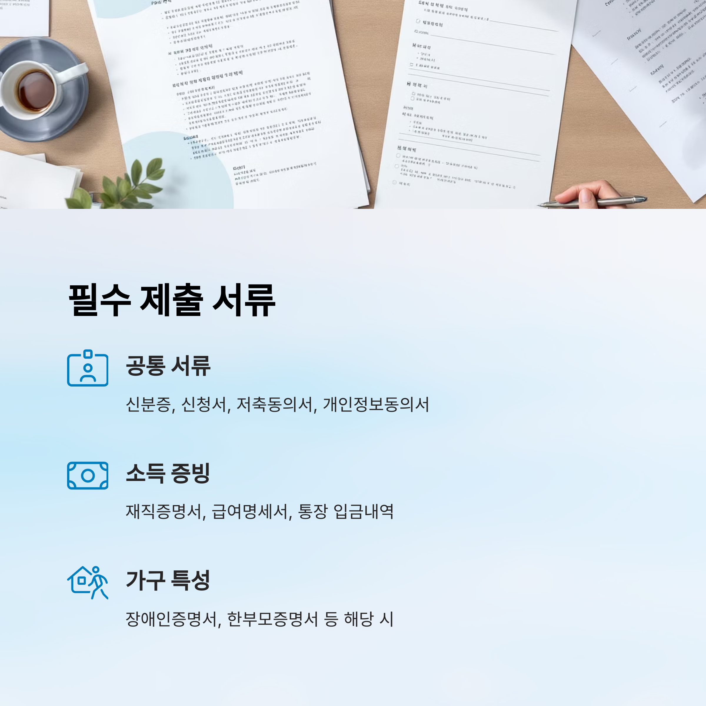 추가로 가구 특성에 따라 필요한 서류도 있어요. 예를 들어, 한부모가정이면 한부모 증명서, 장애인이 포함된 가구는 장애인증명서 등이 필요하고, 북한이탈주민이나 다문화 가구도 해당 증명서가 요구돼요. 세세한 부분까지 확인해야 실수 없이 준비할 수 있어요.