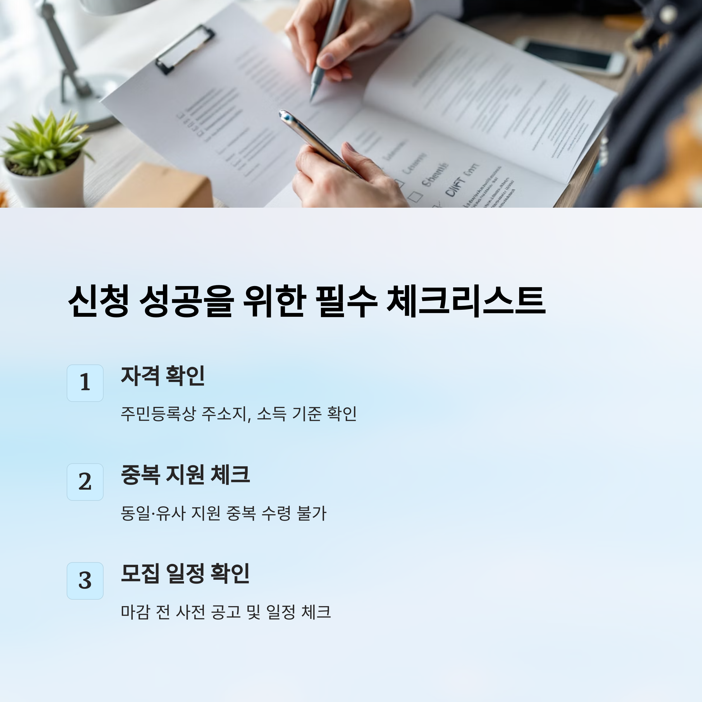 지원금이 많다고 해서 무조건 신청부터 하기보다는, 꼼꼼하게 확인하고 전략적으로 접근하는 게 정말 중요해요. 아래 사항들을 체크해두면 실수 없이 확실하게 혜택 받을 수 있어요.