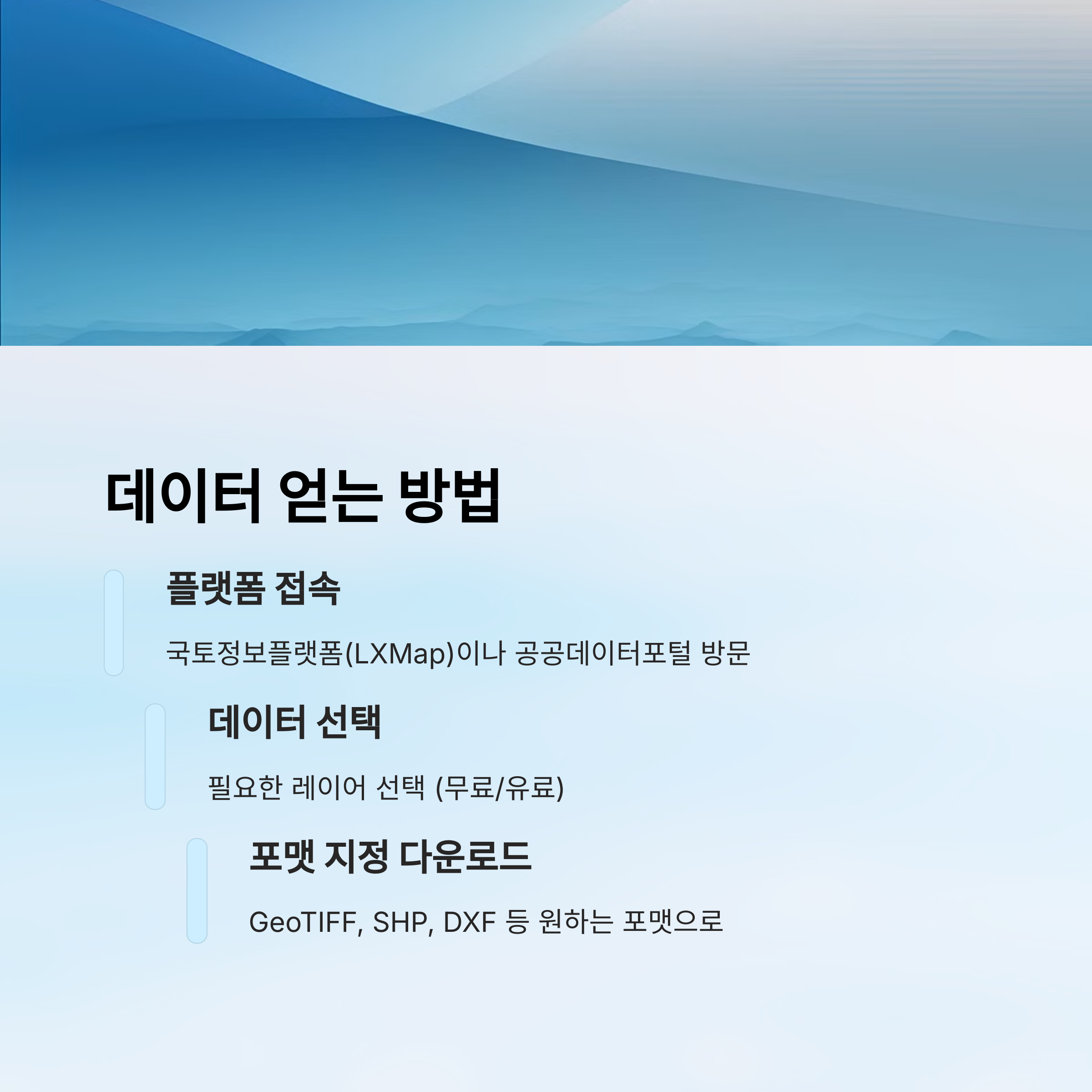 데이터 포맷은 일반적으로 SHP, DXF, KML, GML 등이 제공되며, 일부 자료는 GeoTIFF나 DEM 포맷으로도 받을 수 있어요. GIS 툴에서 바로 사용할 수 있도록 표준화돼 있어서, 초보자도 금방 사용할 수 있답니다.