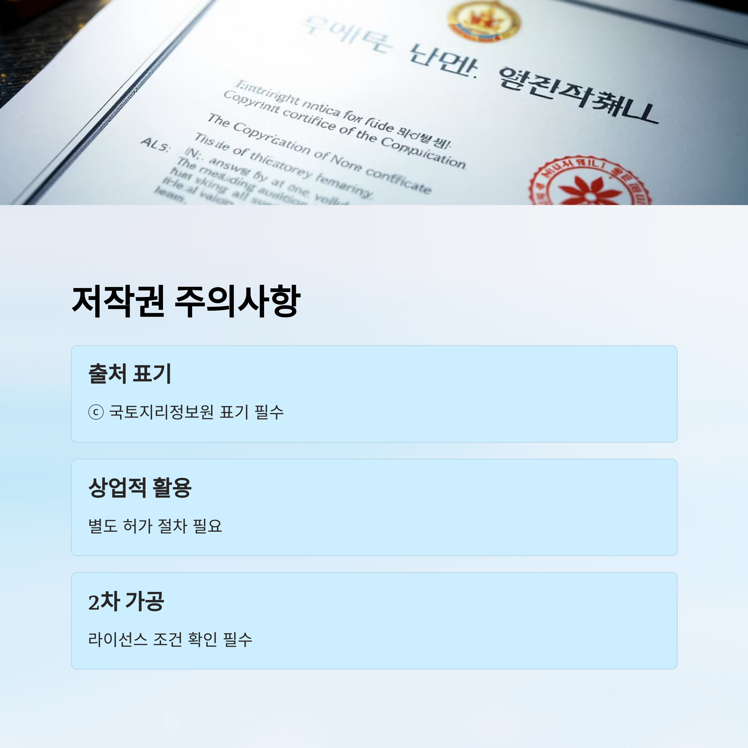 국토지리정보원(NGII)의 데이터는 대부분 무료로 제공되지만, 그렇다고 해서 모든 경우에 자유롭게 쓸 수 있는 건 아니에요. 활용 목적, 상업성 여부, 수정 및 가공 유무에 따라 저작권과 사용 조건이 달라지기 때문에 주의가 필요해요.