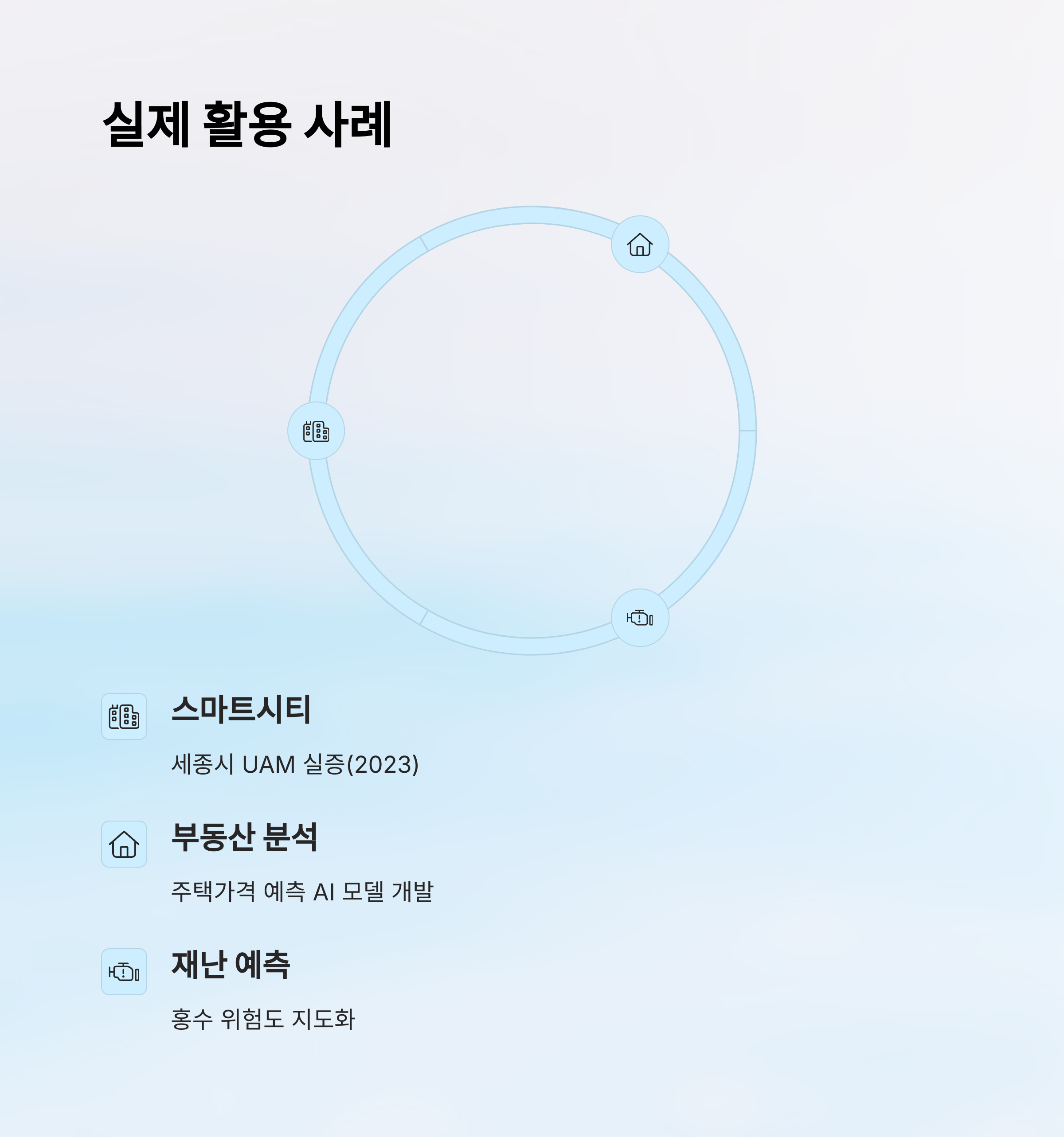 | 환경/기후 | 홍수예측, 생태 보호, 녹지 관리 |