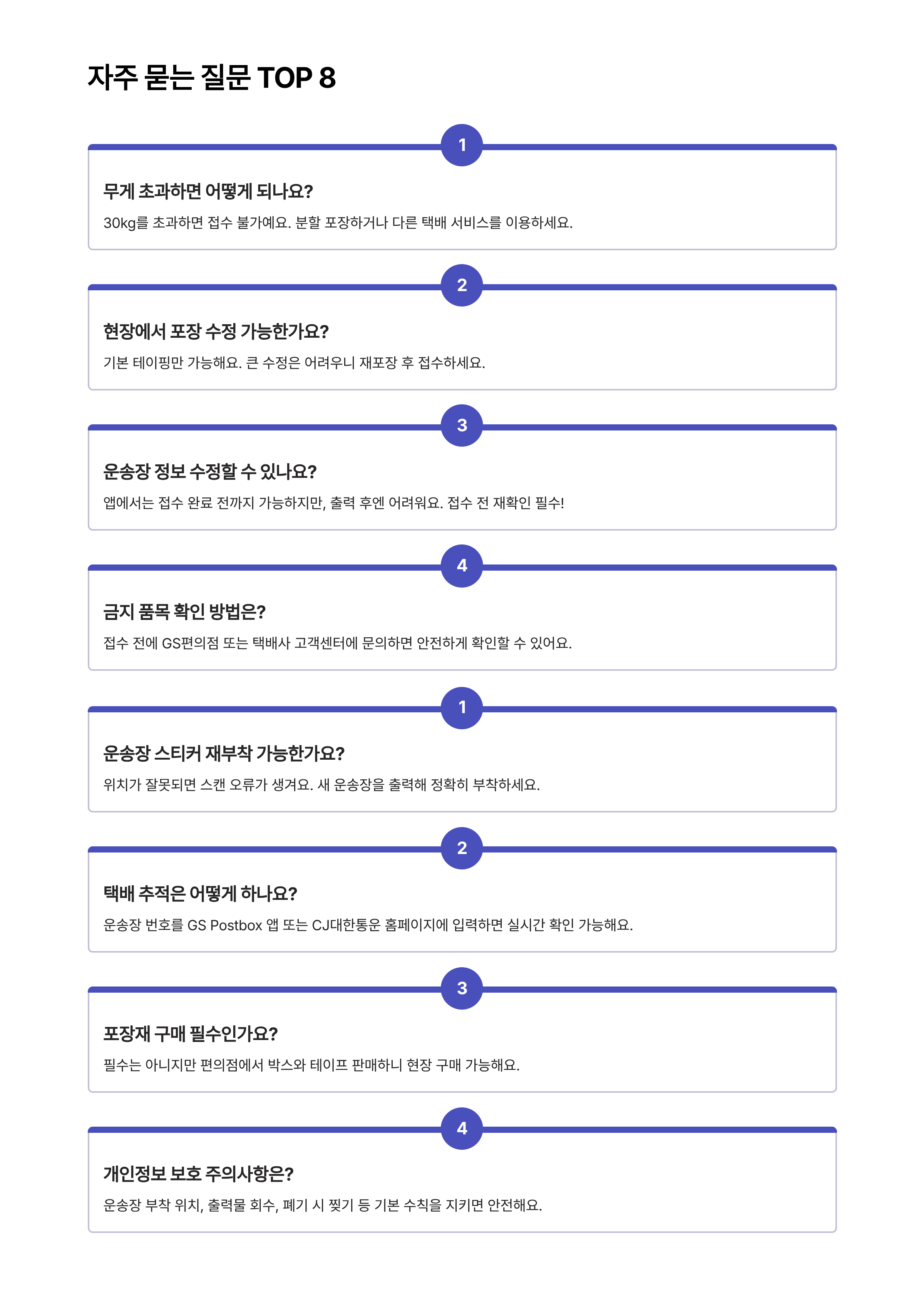 A4. 접수 전에 GS편의점 또는 택배사 고객센터에 문의하면 안전하게 확인할 수 있어요. 불확실한 물품은 사전 문의가 필수예요.